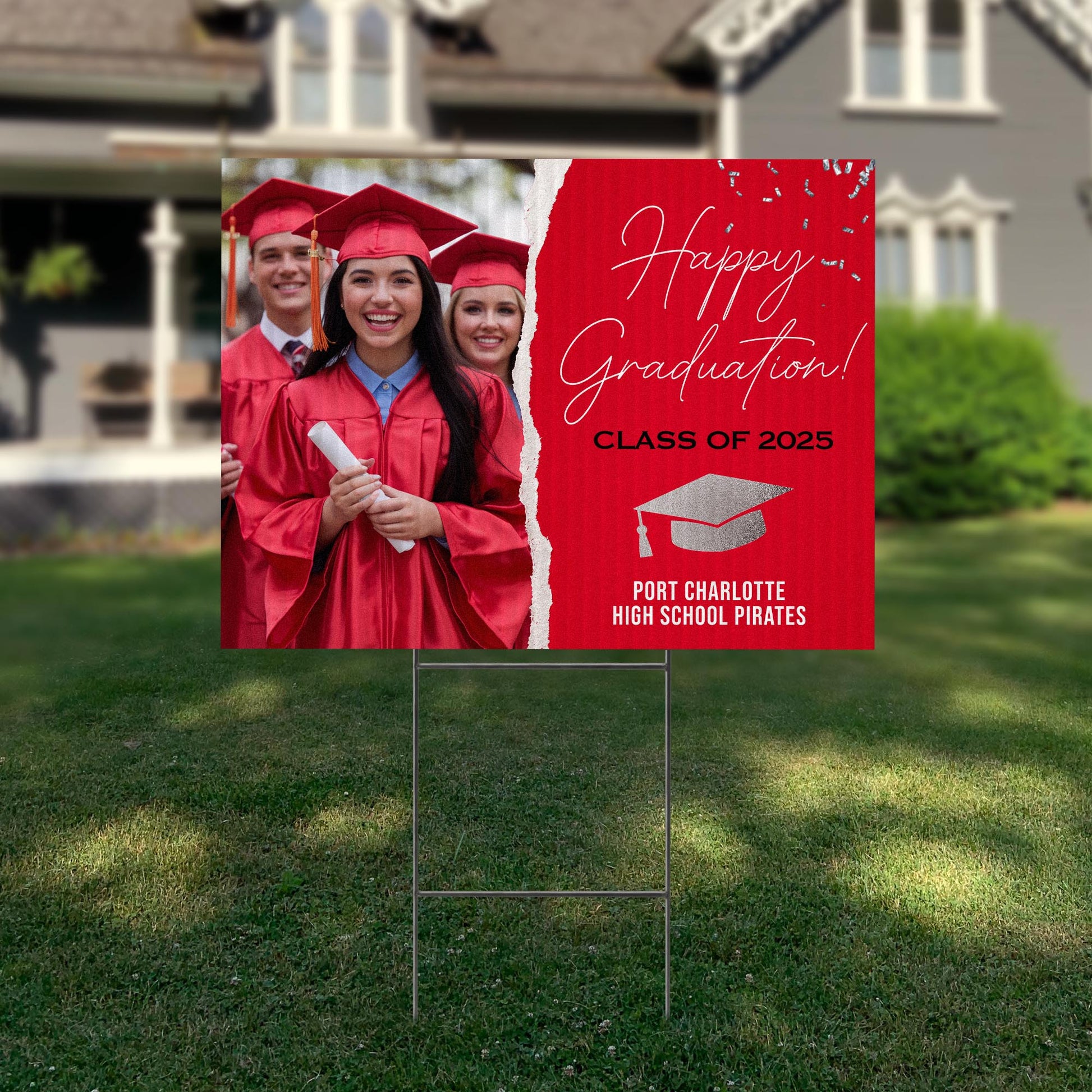 Customizable Design – Celebrate the achievements of Port Charlotte High School graduates with personalized yard signs. Add the graduate’s name, graduation year, and a congratulatory message to create a unique, custom tribute, making it easy for friends, family, and the community to recognize and honor their accomplishment.