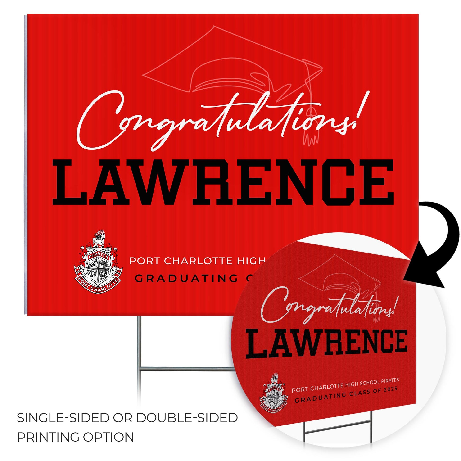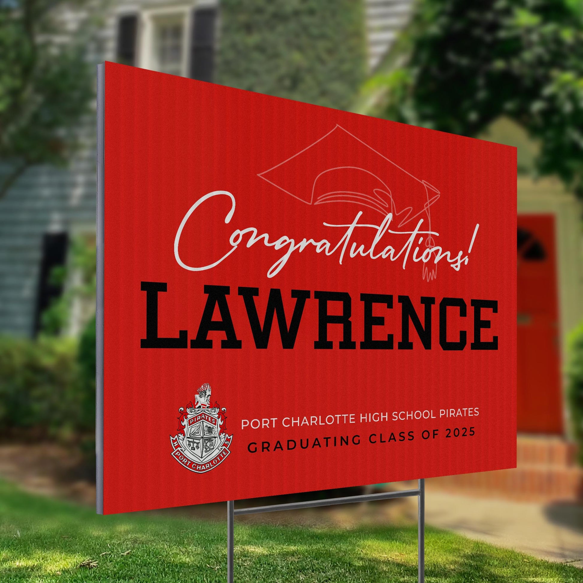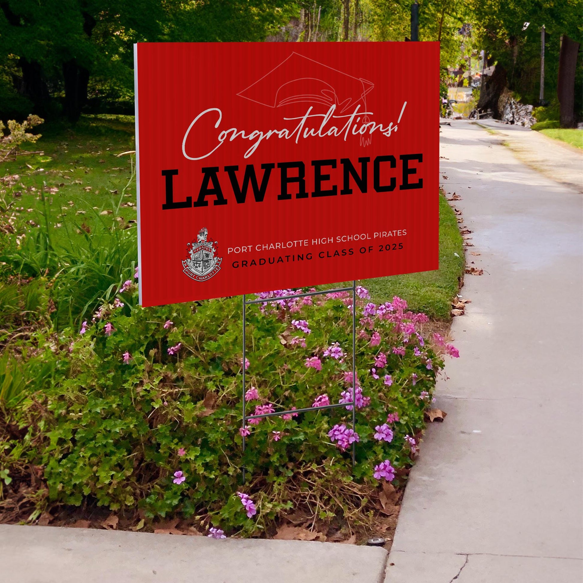 Customizable Design – Celebrate the achievements of Port Charlotte High School graduates with personalized yard signs. Add the graduate’s name, graduation year, and a congratulatory message to create a unique, custom tribute, making it easy for friends, family, and the community to recognize and honor their accomplishment.