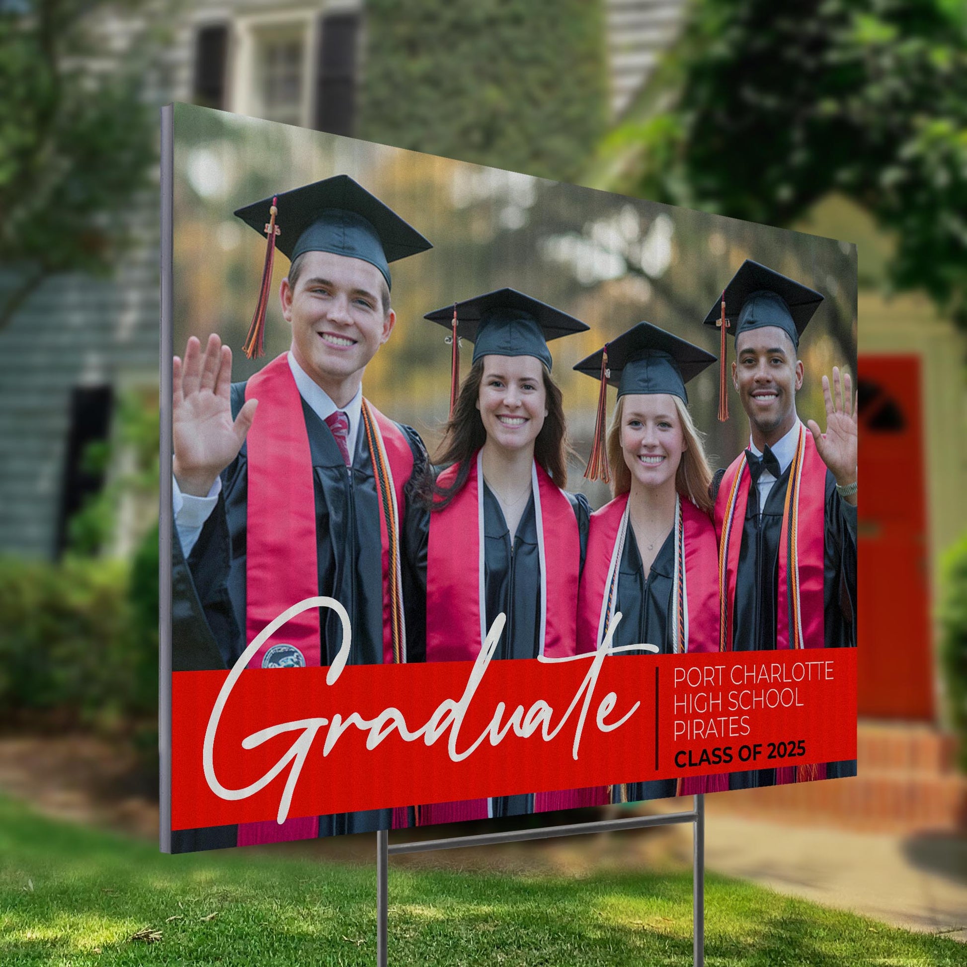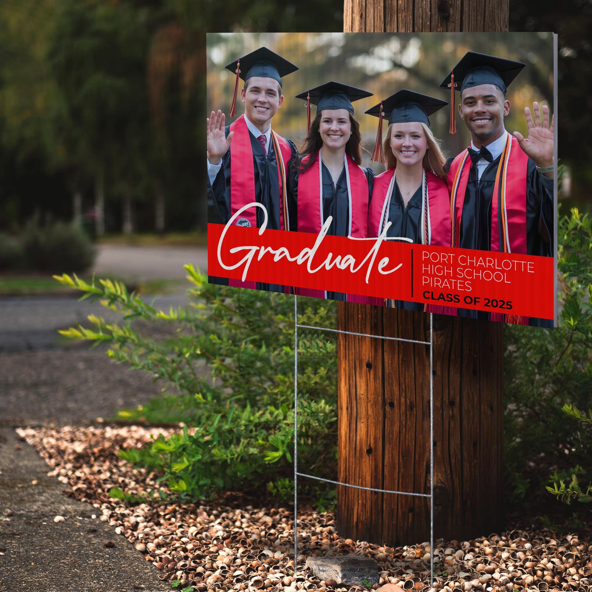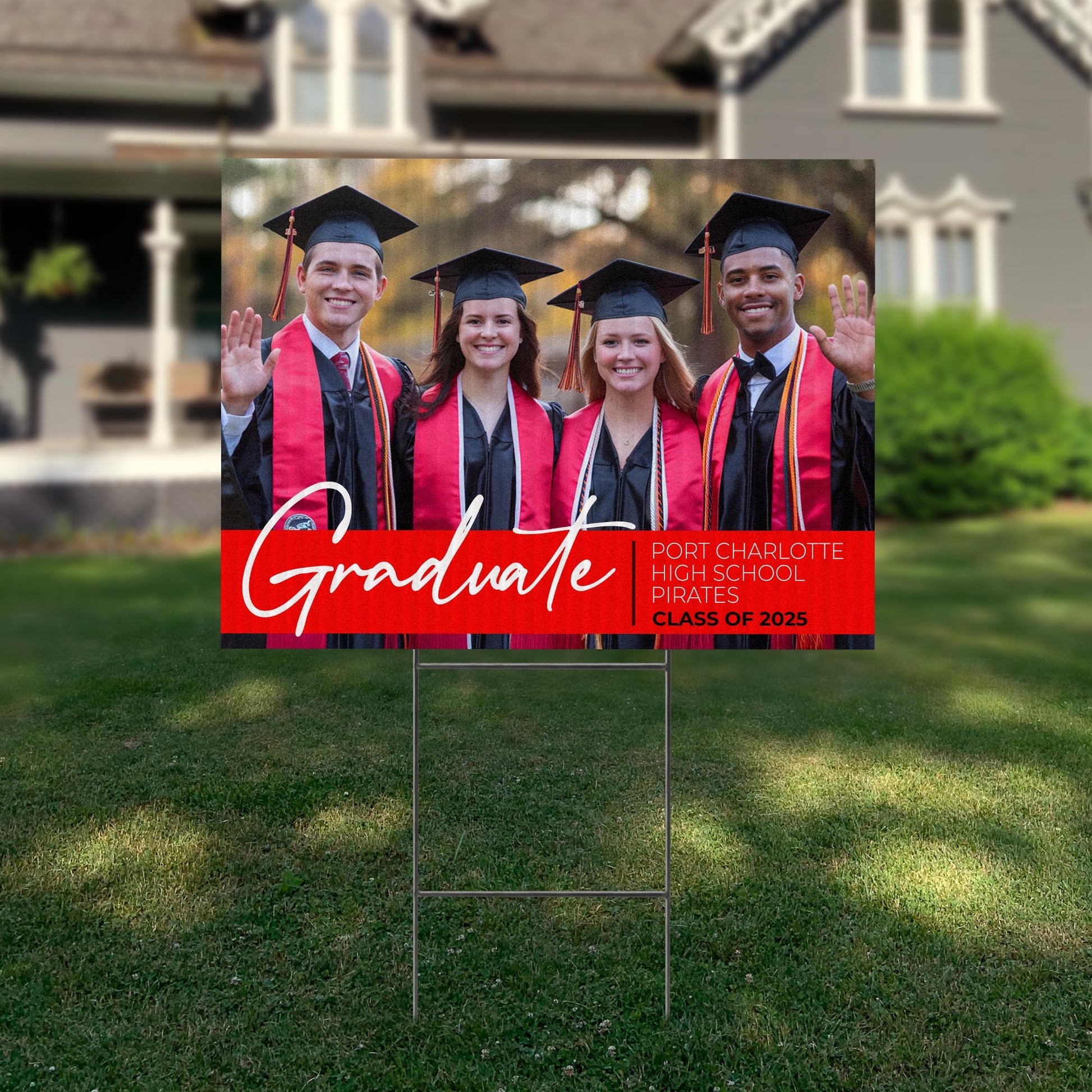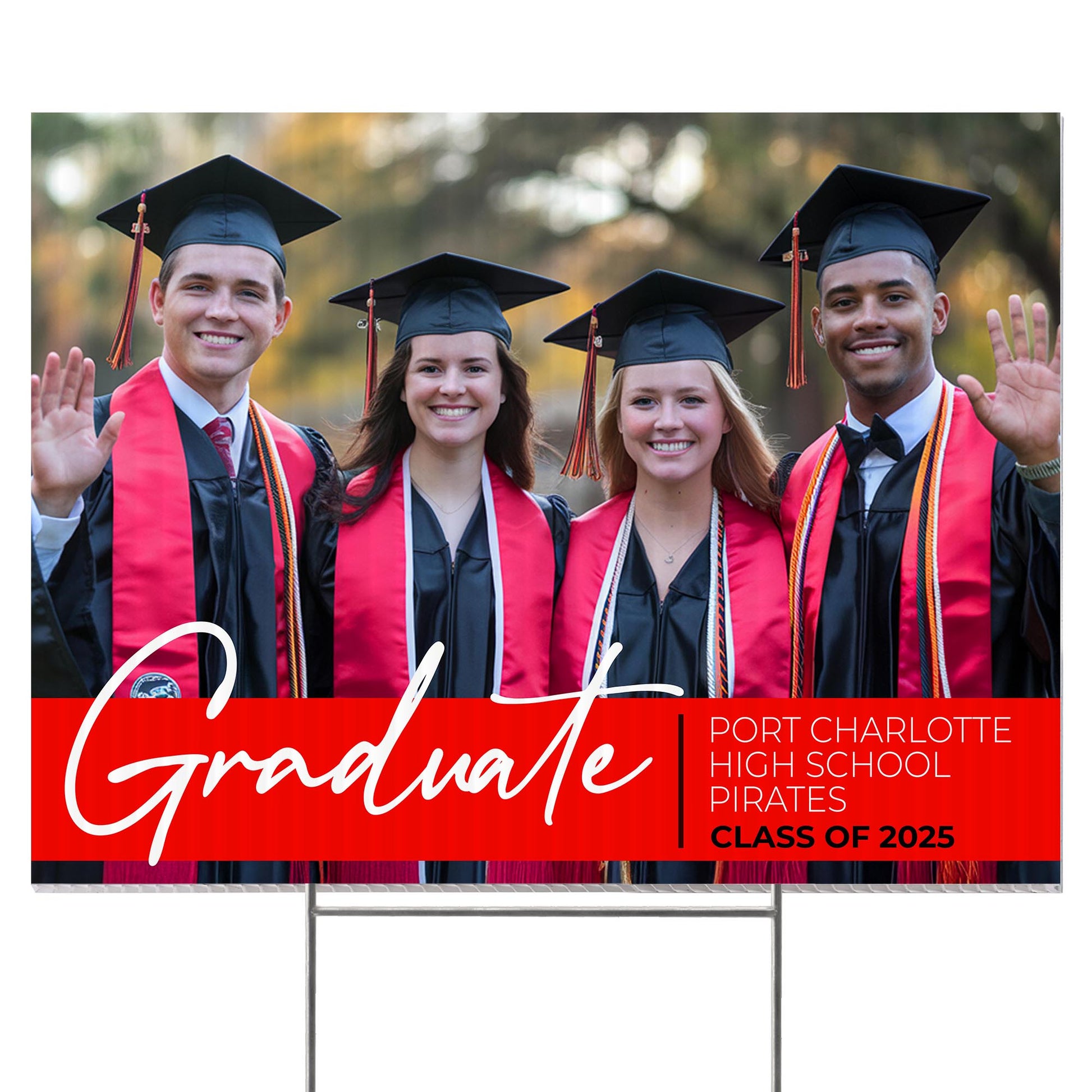 Customizable Design – Celebrate the achievements of Port Charlotte High School graduates with personalized yard signs. Add the graduate’s name, graduation year, and a congratulatory message to create a unique, custom tribute, making it easy for friends, family, and the community to recognize and honor their accomplishment.