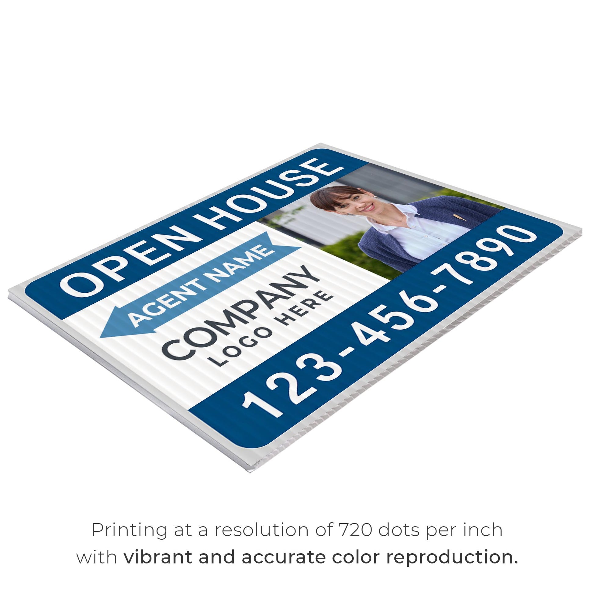 Customizable Design – Draw attention to your property with personalized Open House yard signs. Add your agent name, contact info, event details, and branding to craft a sign that stands out. It's a smart, polished way to attract serious buyers and boost visibility.
