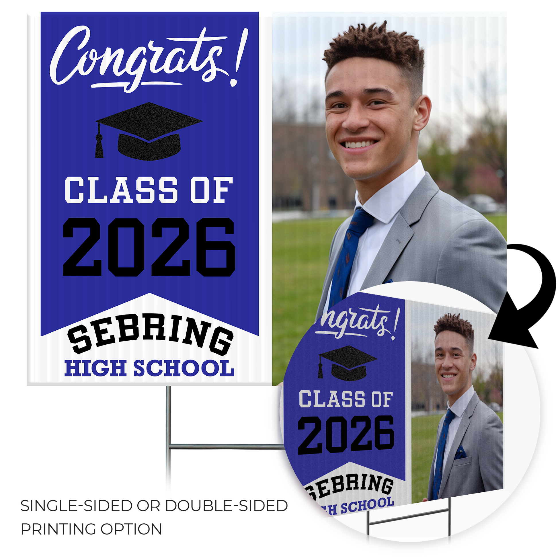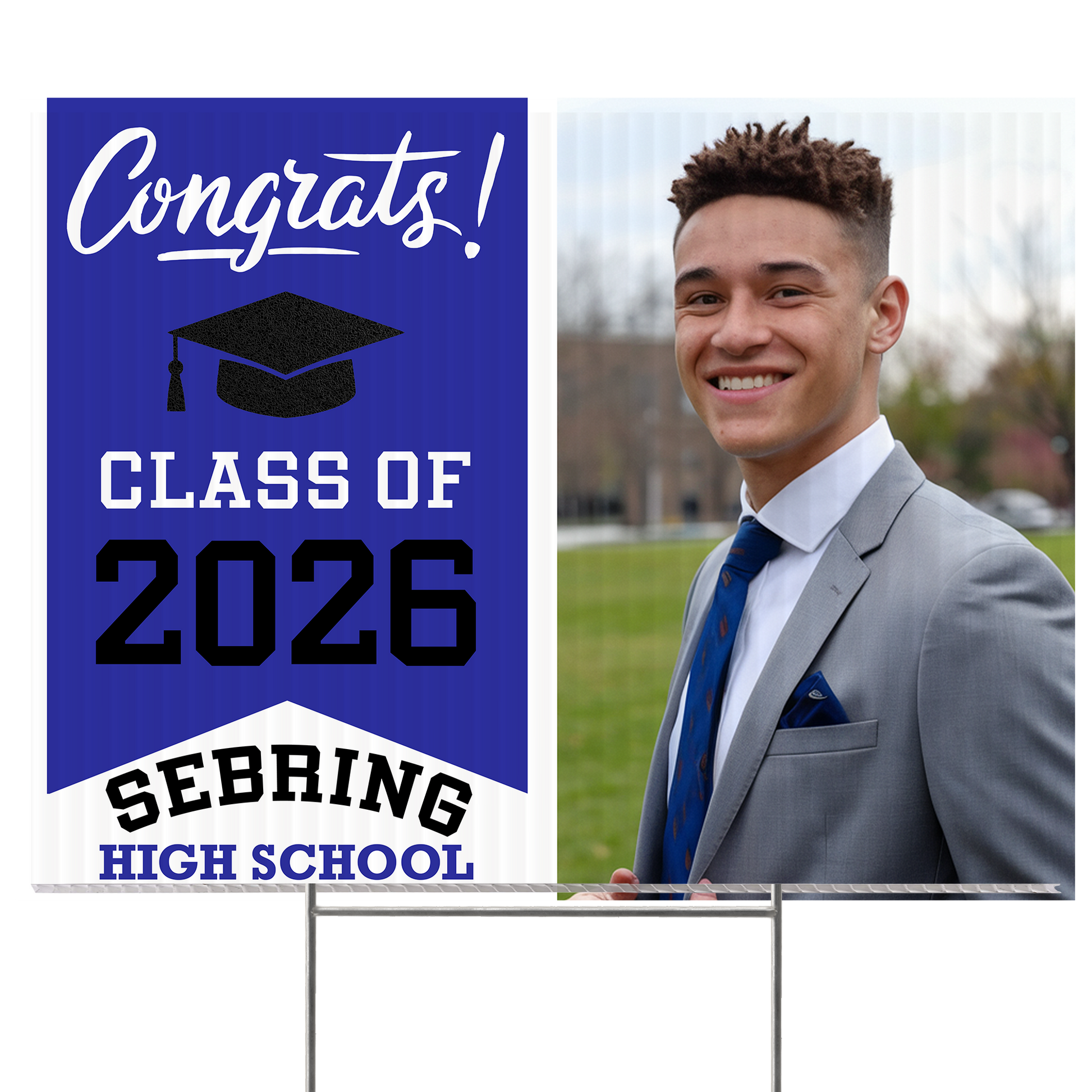 Customizable Design – Celebrate the achievements of Sebring High School graduates with personalized yard signs. Add the graduate's name, graduation year, and a congratulatory message to create a unique, custom tribute, making it easy for friends, family, and the community to recognize and honor their accomplishment.