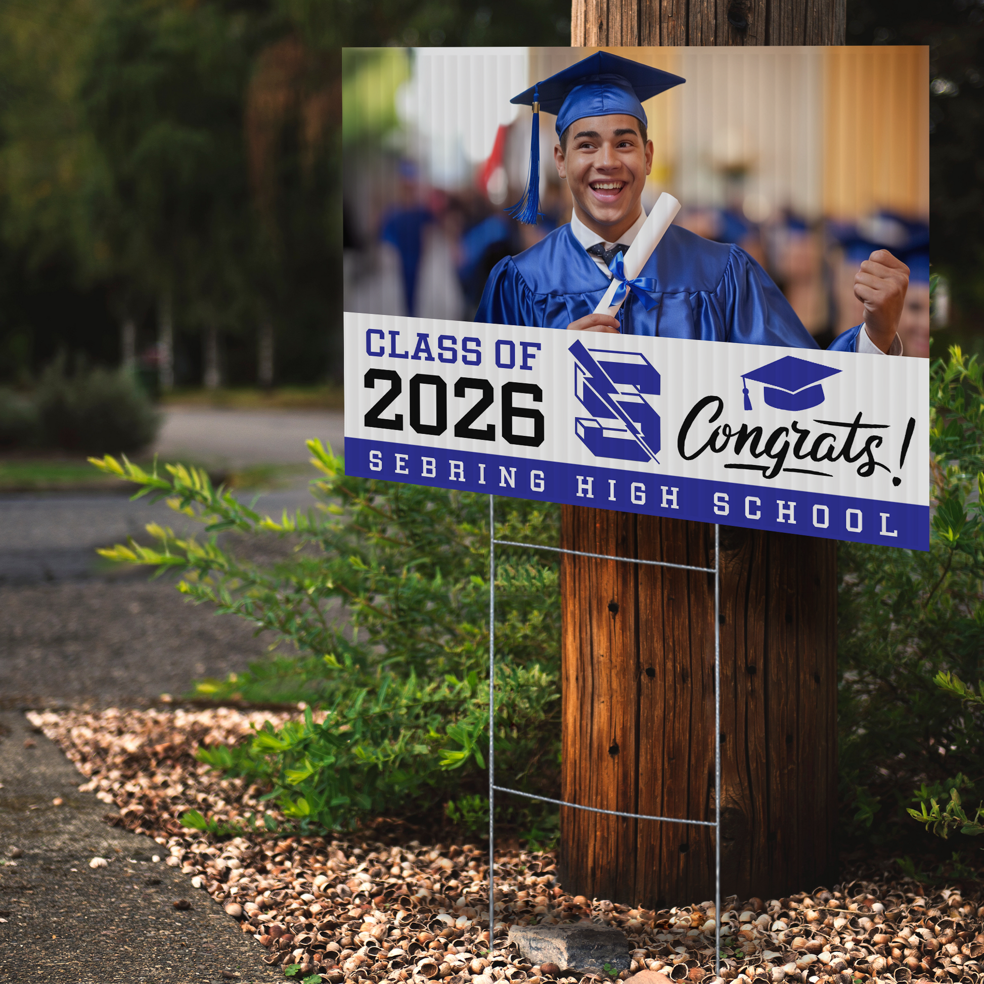 Customizable Design – Celebrate the achievements of Sebring High School graduates with personalized yard signs. Add the graduate's name, graduation year, and a congratulatory message to create a unique, custom tribute, making it easy for friends, family, and the community to recognize and honor their accomplishment.