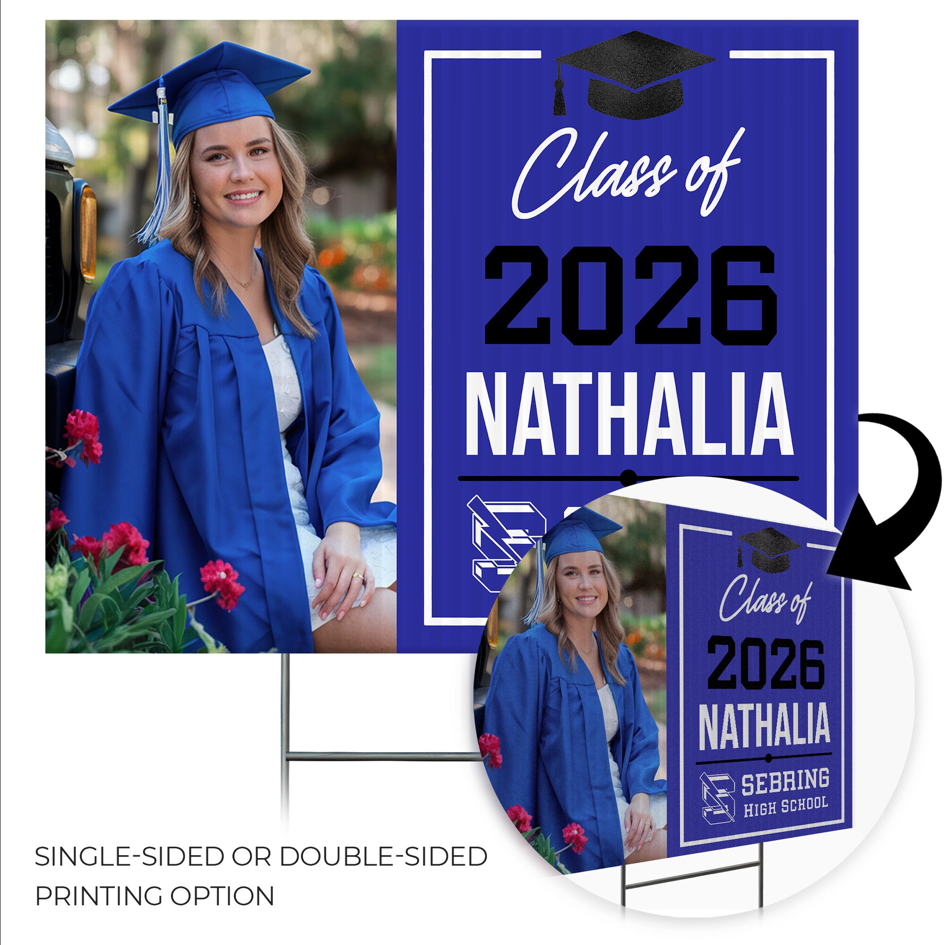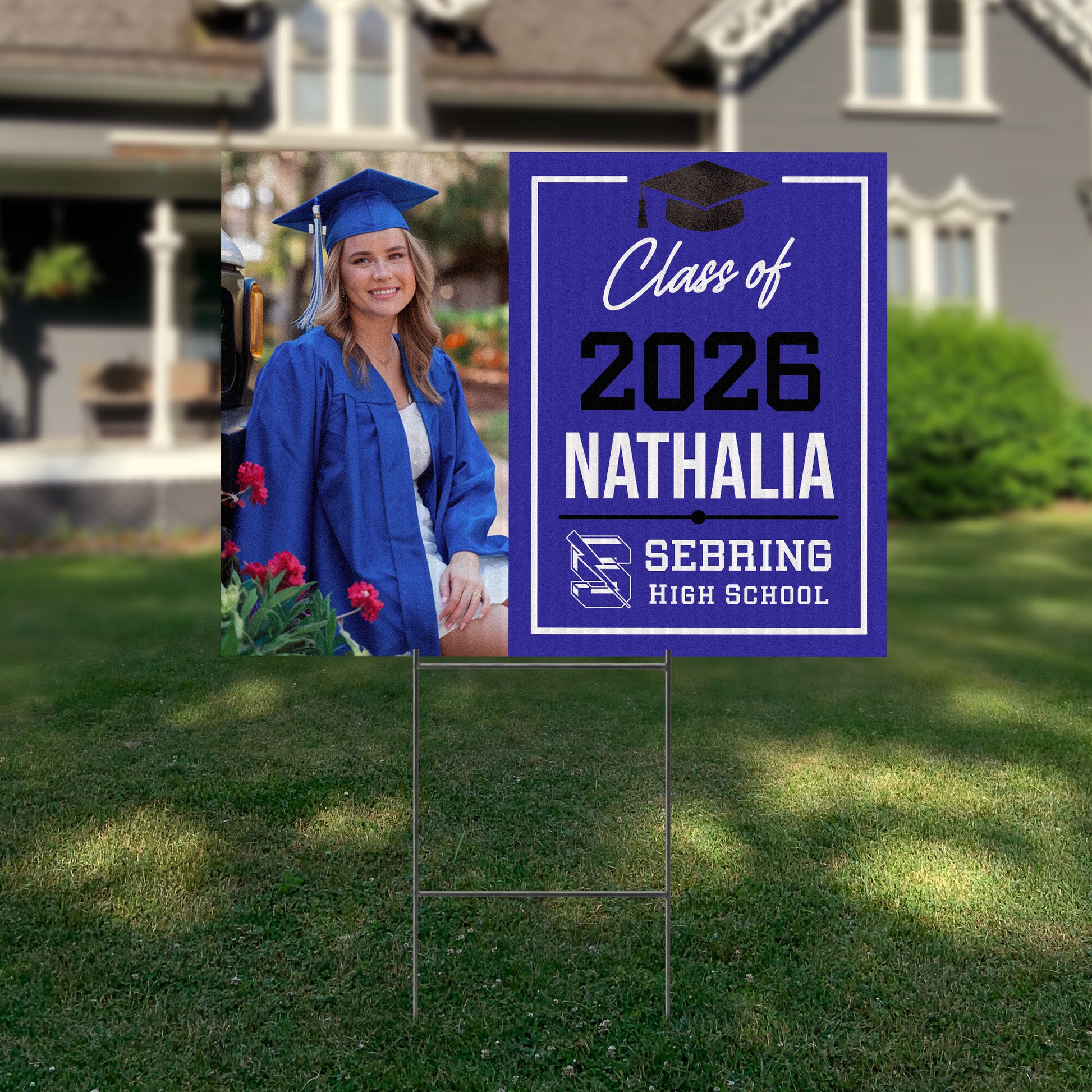 Customizable Design – Celebrate the achievements of Sebring High School graduates with personalized yard signs. Add the graduate's name, graduation year, and a congratulatory message to create a unique, custom tribute, making it easy for friends, family, and the community to recognize and honor their accomplishment.