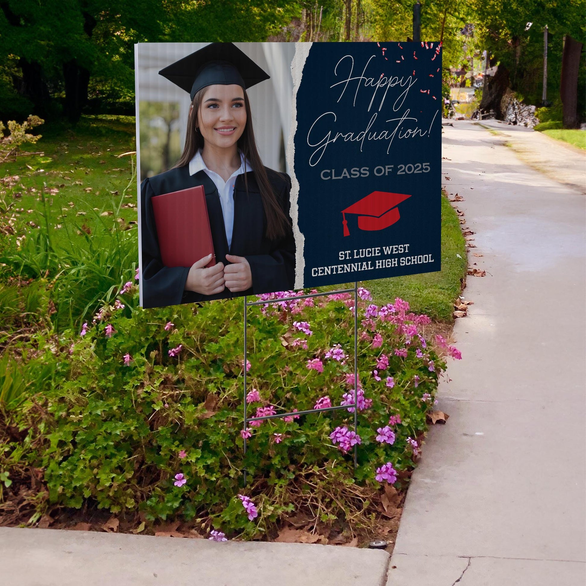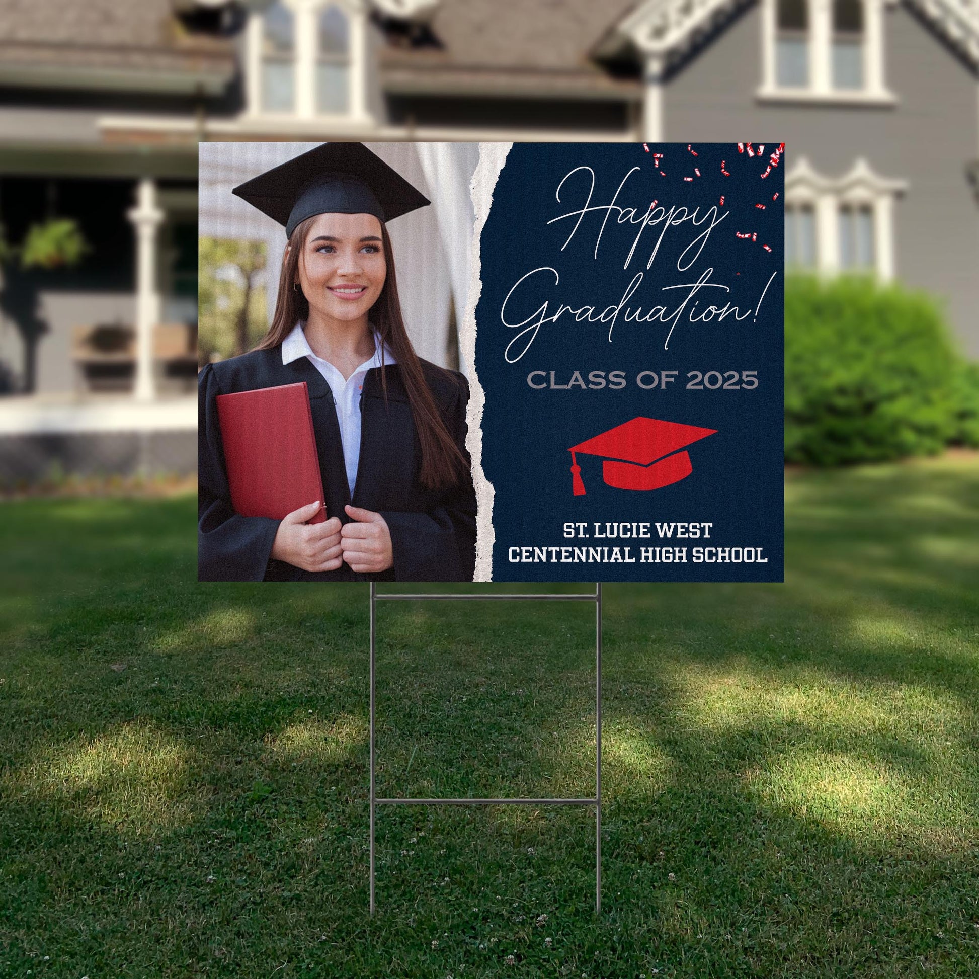 Customizable Design – Celebrate the achievements of St. Lucie West Centennial High School graduates with personalized yard signs. Add the graduate's name, graduation year, and a congratulatory message to create a unique, custom tribute, making it easy for friends, family, and the community to recognize and honor their accomplishment.