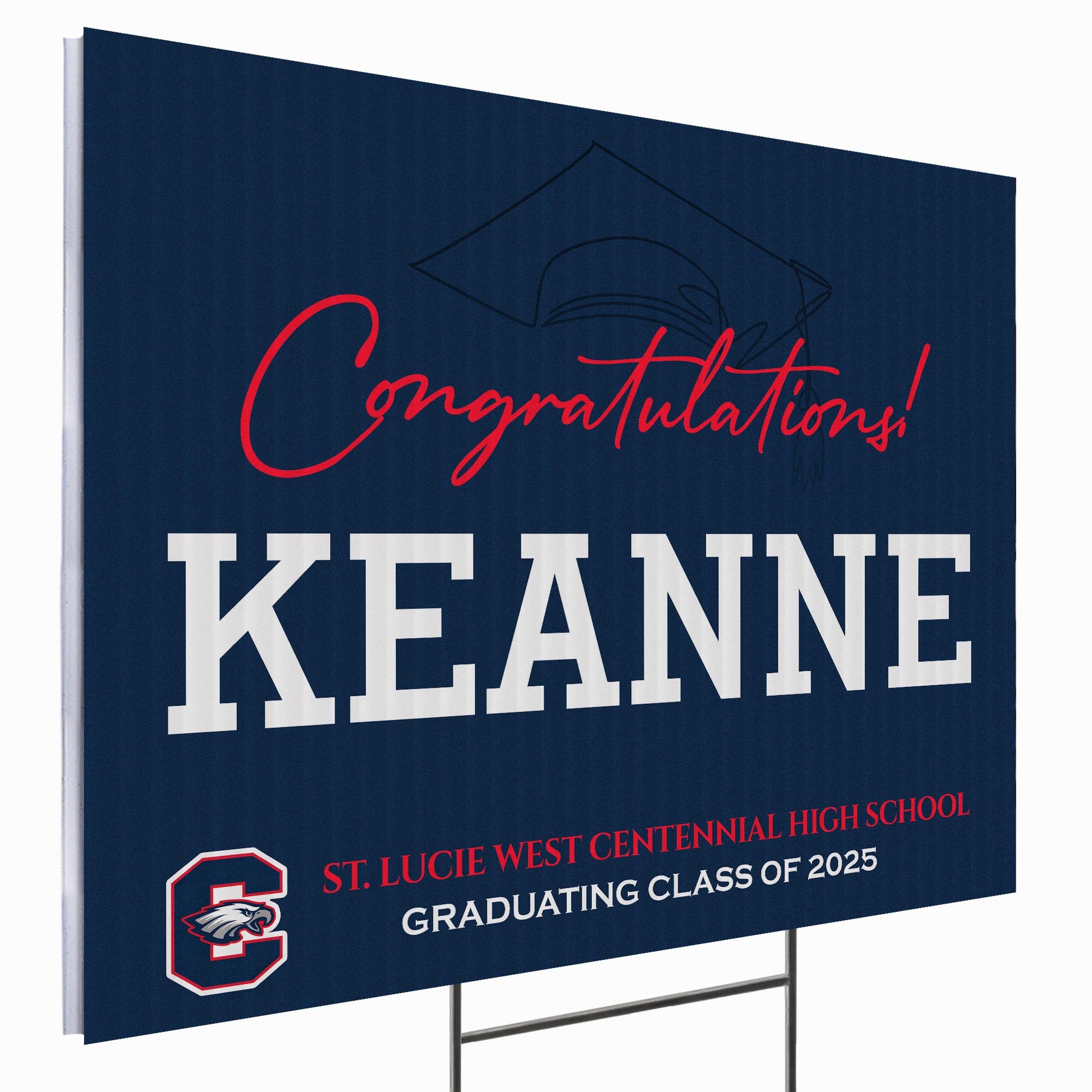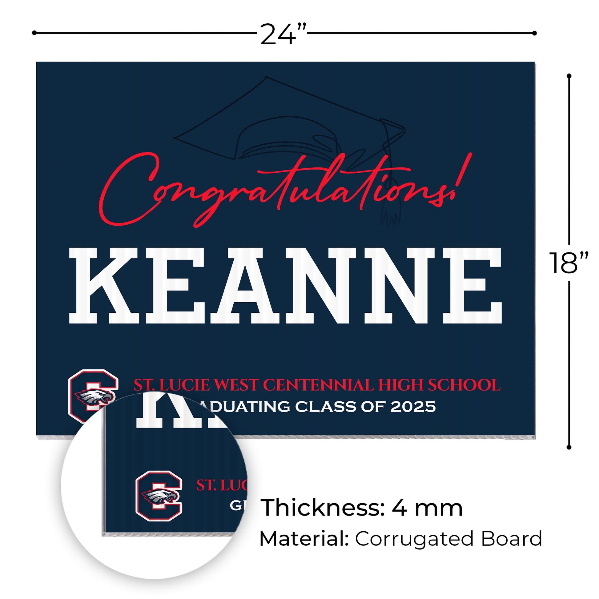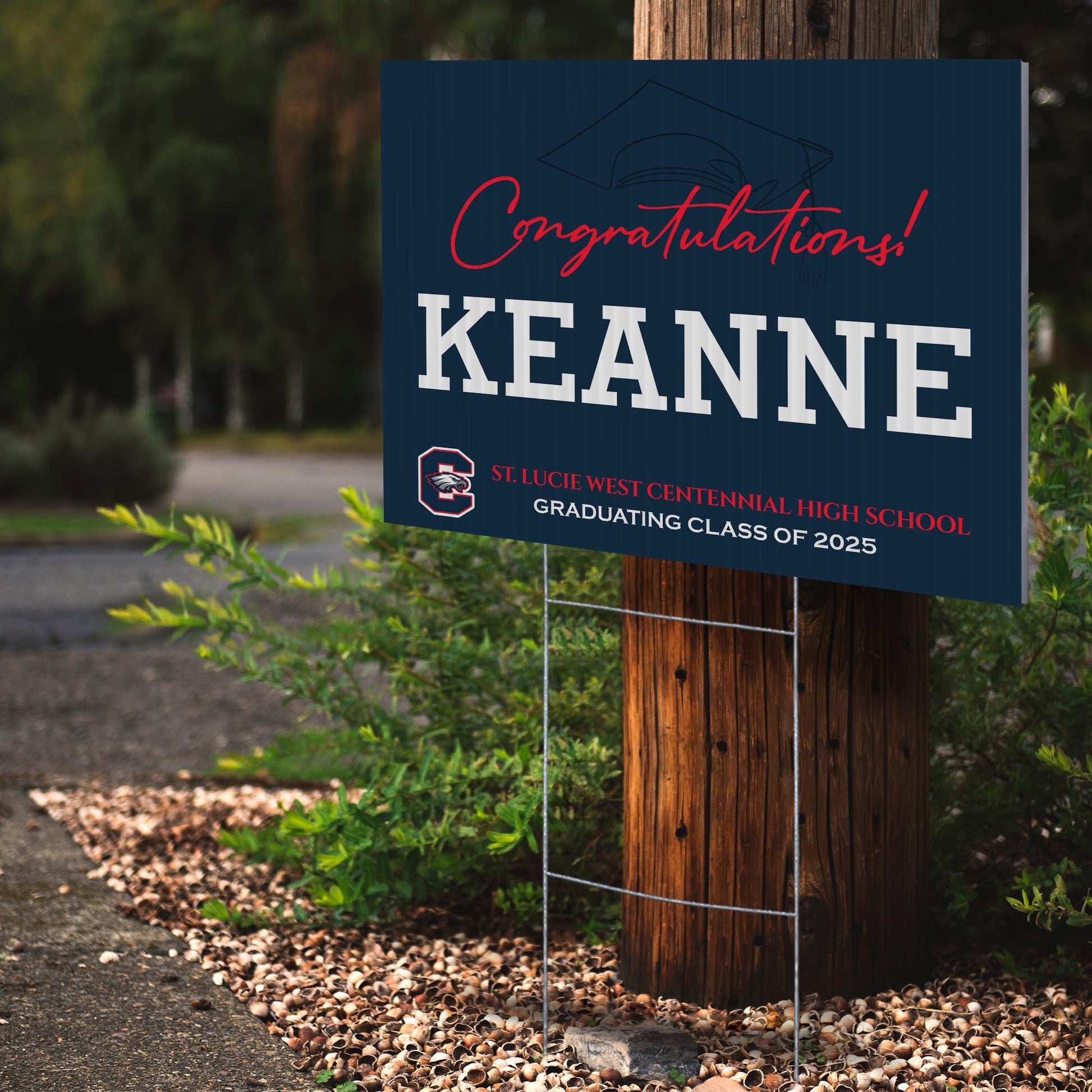 Customizable Design – Celebrate the achievements of St. Lucie West Centennial High School graduates with personalized yard signs. Add the graduate's name, graduation year, and a congratulatory message to create a unique, custom tribute, making it easy for friends, family, and the community to recognize and honor their accomplishment.