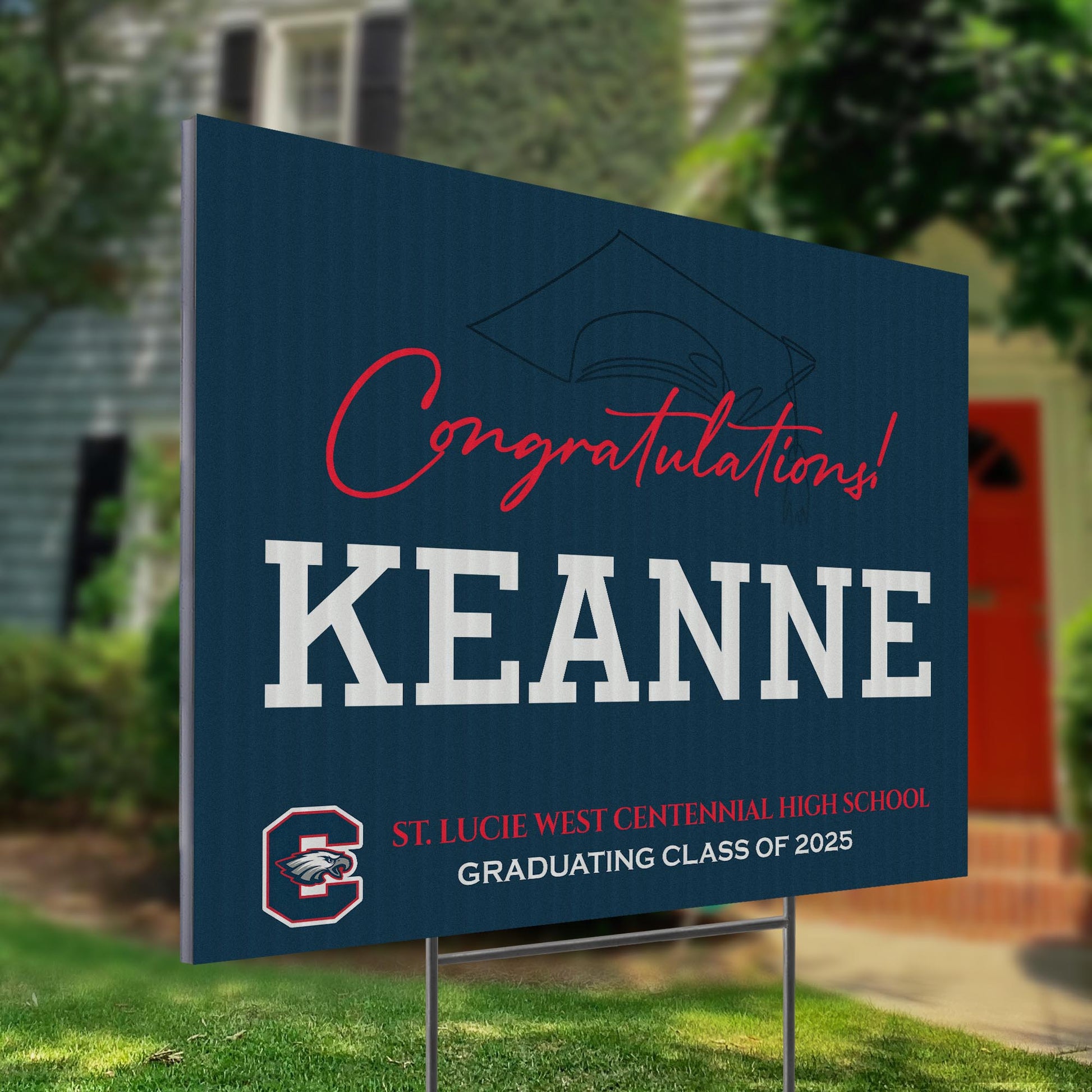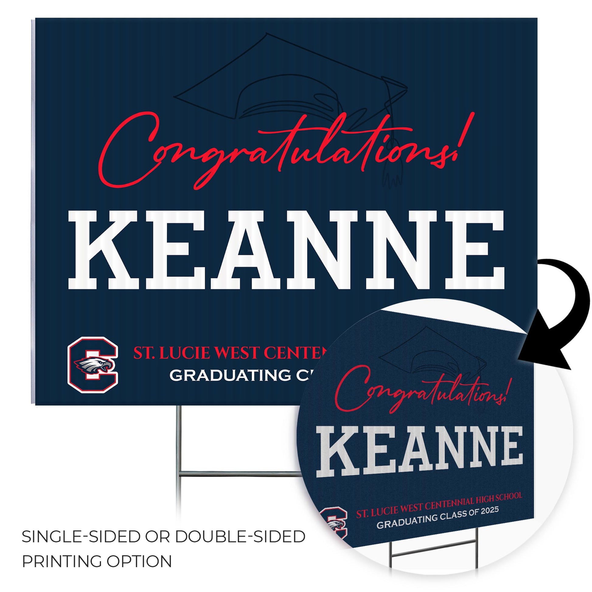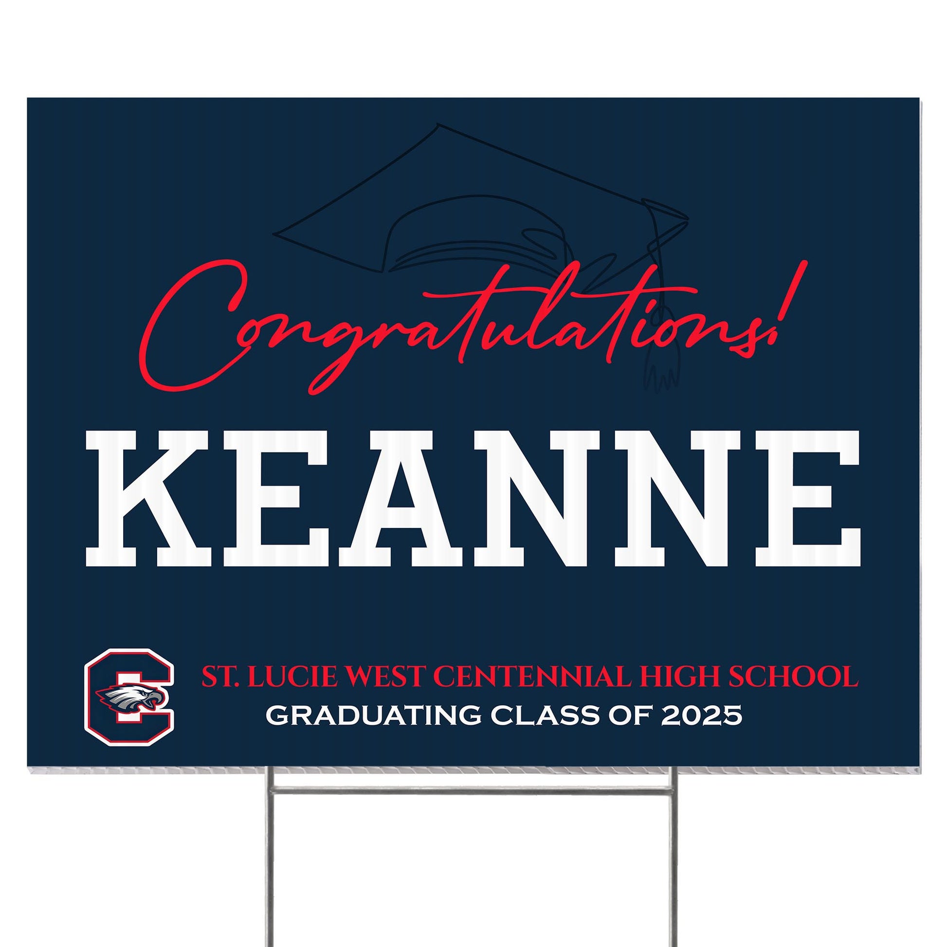 Customizable Design – Celebrate the achievements of St. Lucie West Centennial High School graduates with personalized yard signs. Add the graduate's name, graduation year, and a congratulatory message to create a unique, custom tribute, making it easy for friends, family, and the community to recognize and honor their accomplishment.