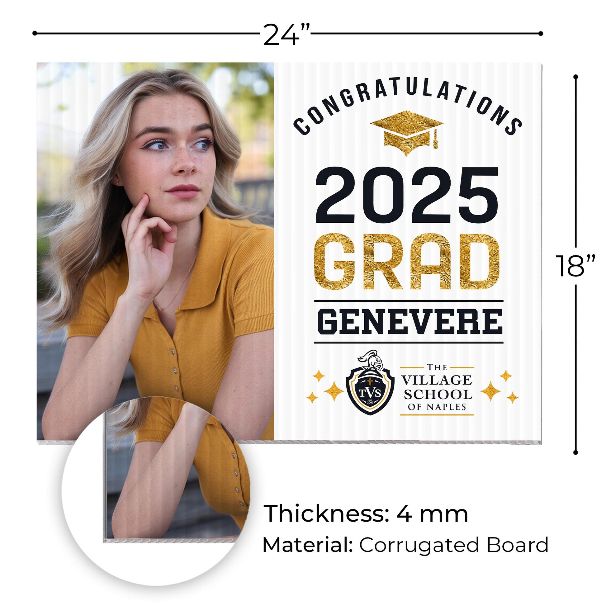 Customizable Design – Celebrate the achievements of The Village School of Naples graduates with personalized yard signs. Add the graduate’s name, graduation year, and a congratulatory message to create a unique, custom tribute, making it easy for friends, family, and the community to recognize and honor their accomplishment.