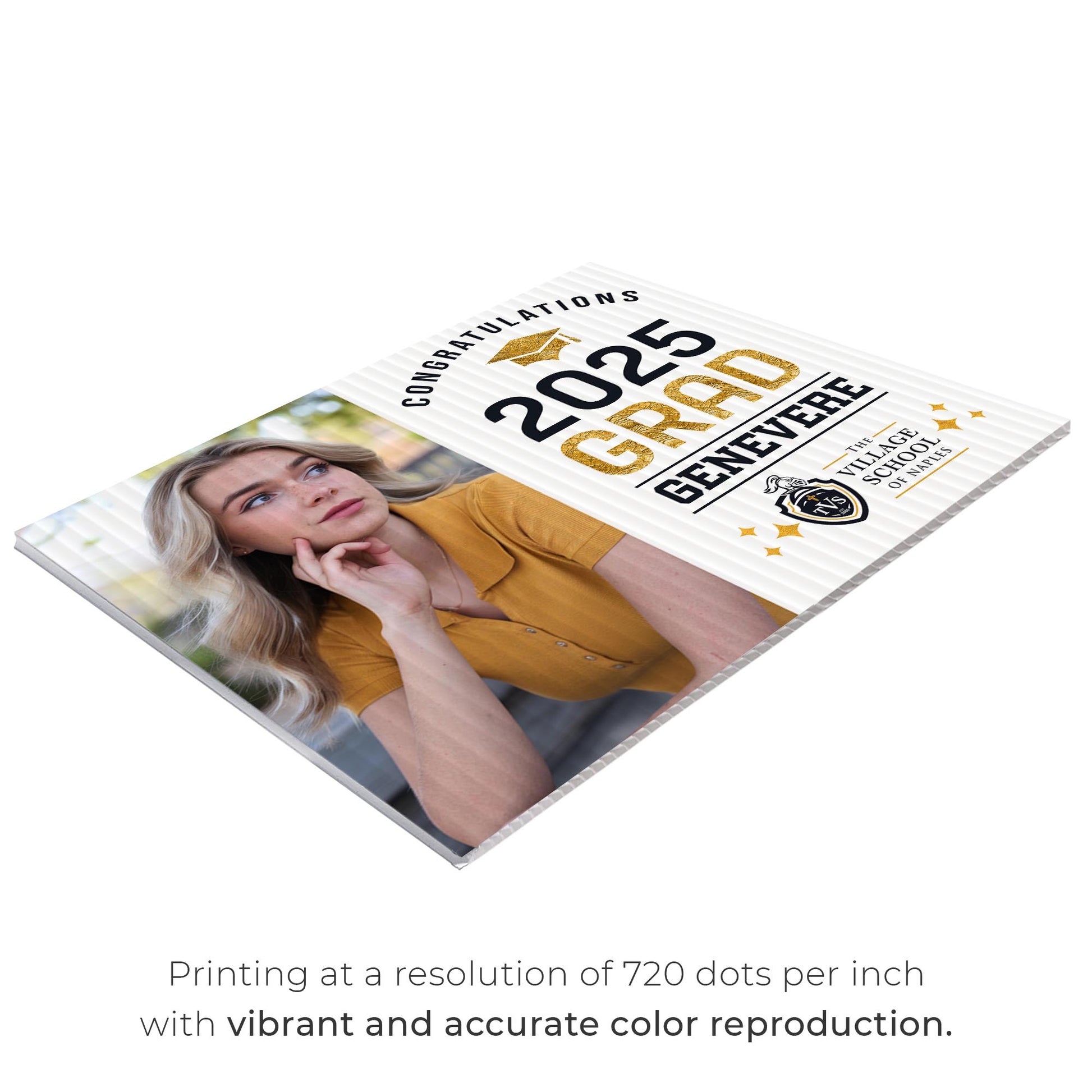 Vibrant Full-Color Printing – Make a statement with bold, full-color graphics printed on both sides of the sign. The eye-catching congratulatory message, along with the graduate’s details, ensures visibility from every angle, helping to celebrate this special milestone in style.