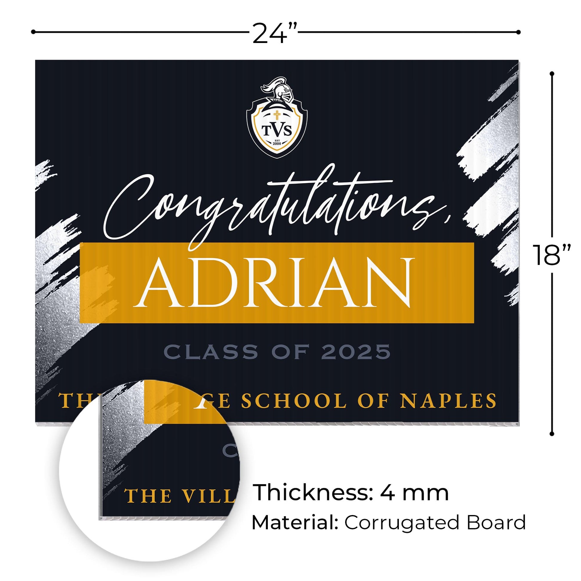 Customizable Design – Celebrate the achievements of The Village School of Naples graduates with personalized yard signs. Add the graduate’s name, graduation year, and a congratulatory message to create a unique, custom tribute, making it easy for friends, family, and the community to recognize and honor their accomplishment.