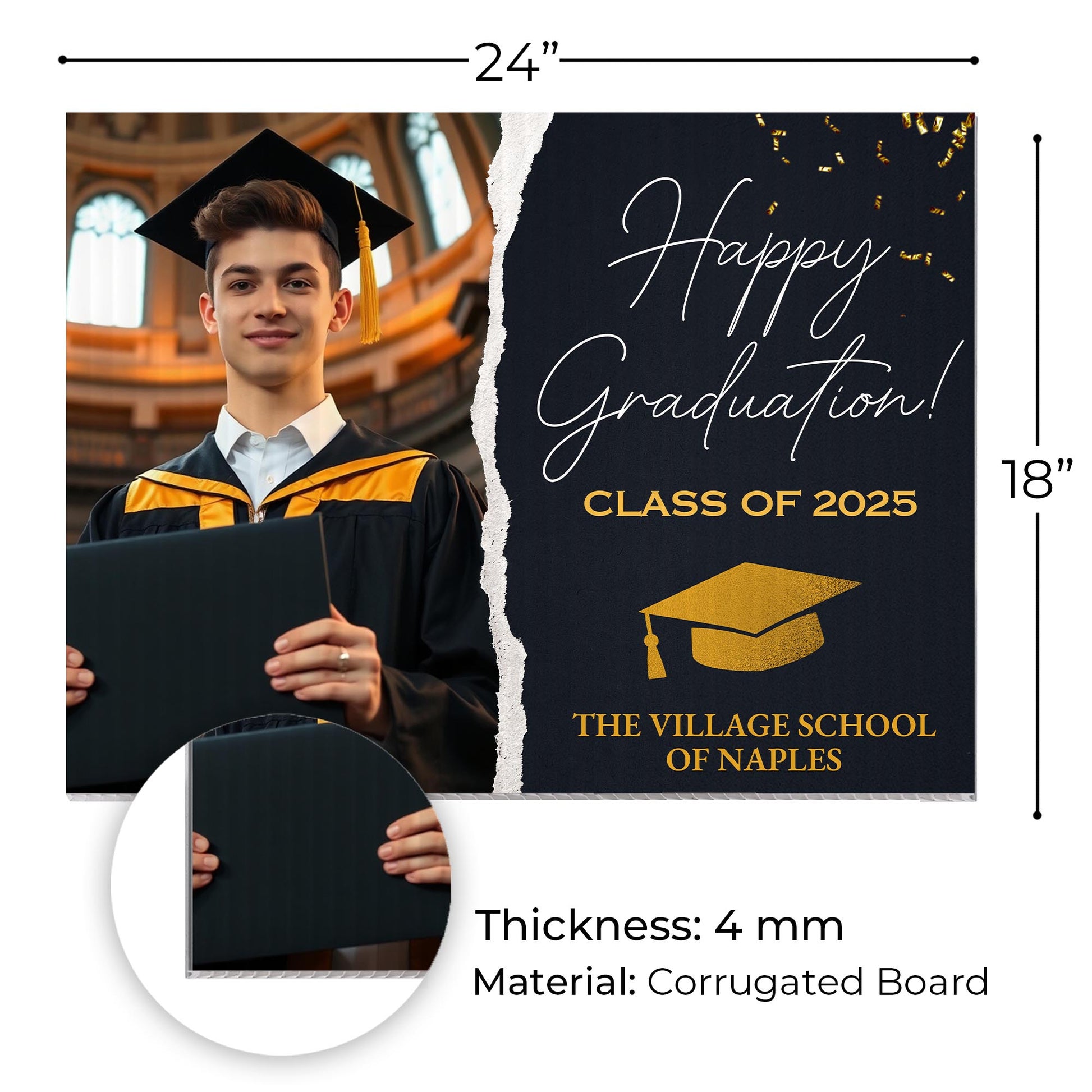 Customizable Design – Celebrate the achievements of The Village School of Naples graduates with personalized yard signs. Add the graduate’s name, graduation year, and a congratulatory message to create a unique, custom tribute, making it easy for friends, family, and the community to recognize and honor their accomplishment.