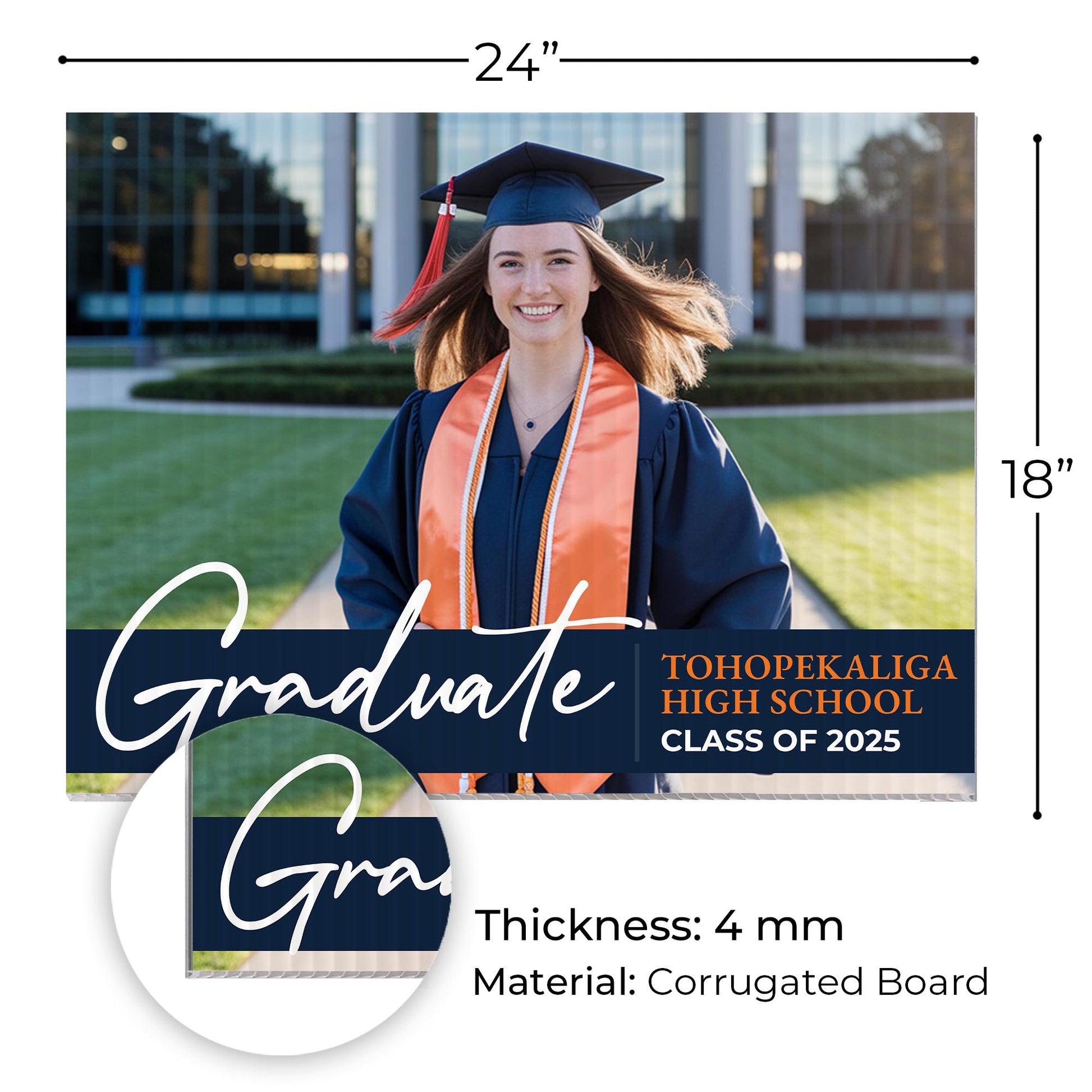 Customizable Design – Celebrate the achievements of Tohopekaliga High School graduates with personalized yard signs. Add the graduate's name, graduation year, and a congratulatory message to create a unique, custom tribute, making it easy for friends, family, and the community to recognize and honor their accomplishment.