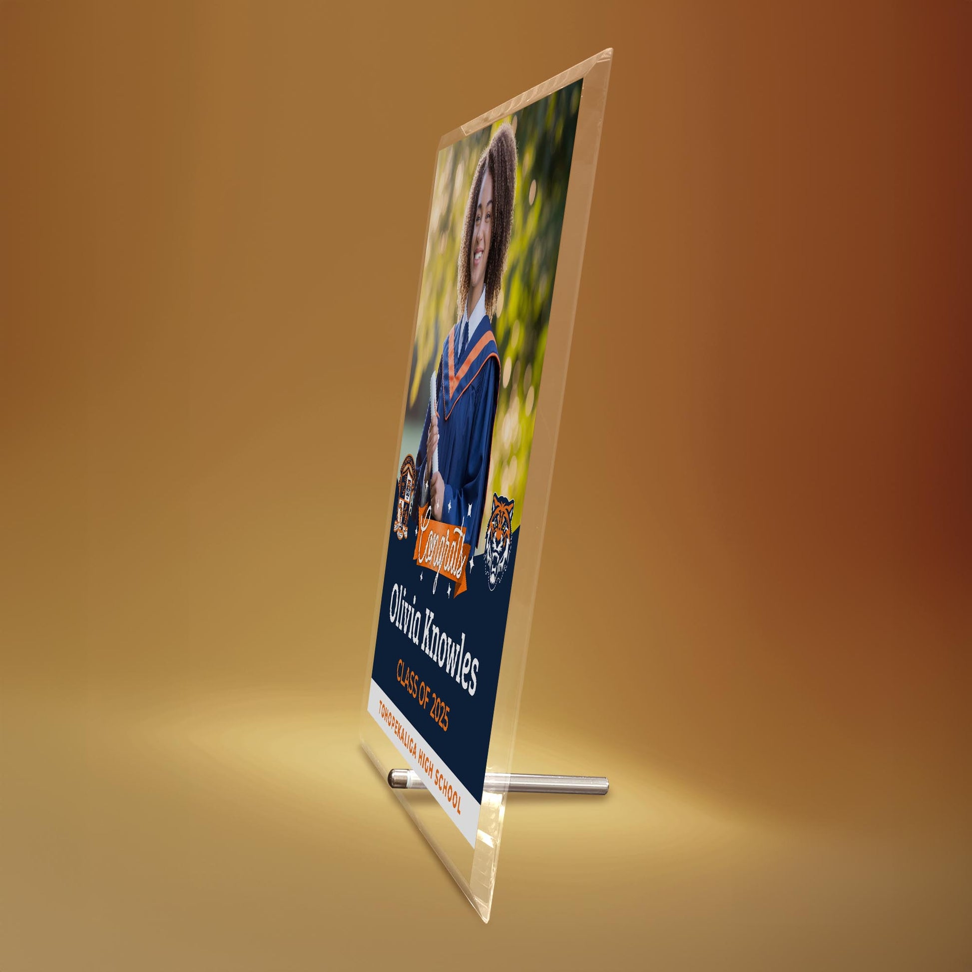 Vibrant Full-Color Printing – Make a statement with bold, full-color graphics expertly printed onto the glass surface. The eye-catching congratulatory message, along with the graduate's details, ensures it stands out and commemorates their achievement in style.