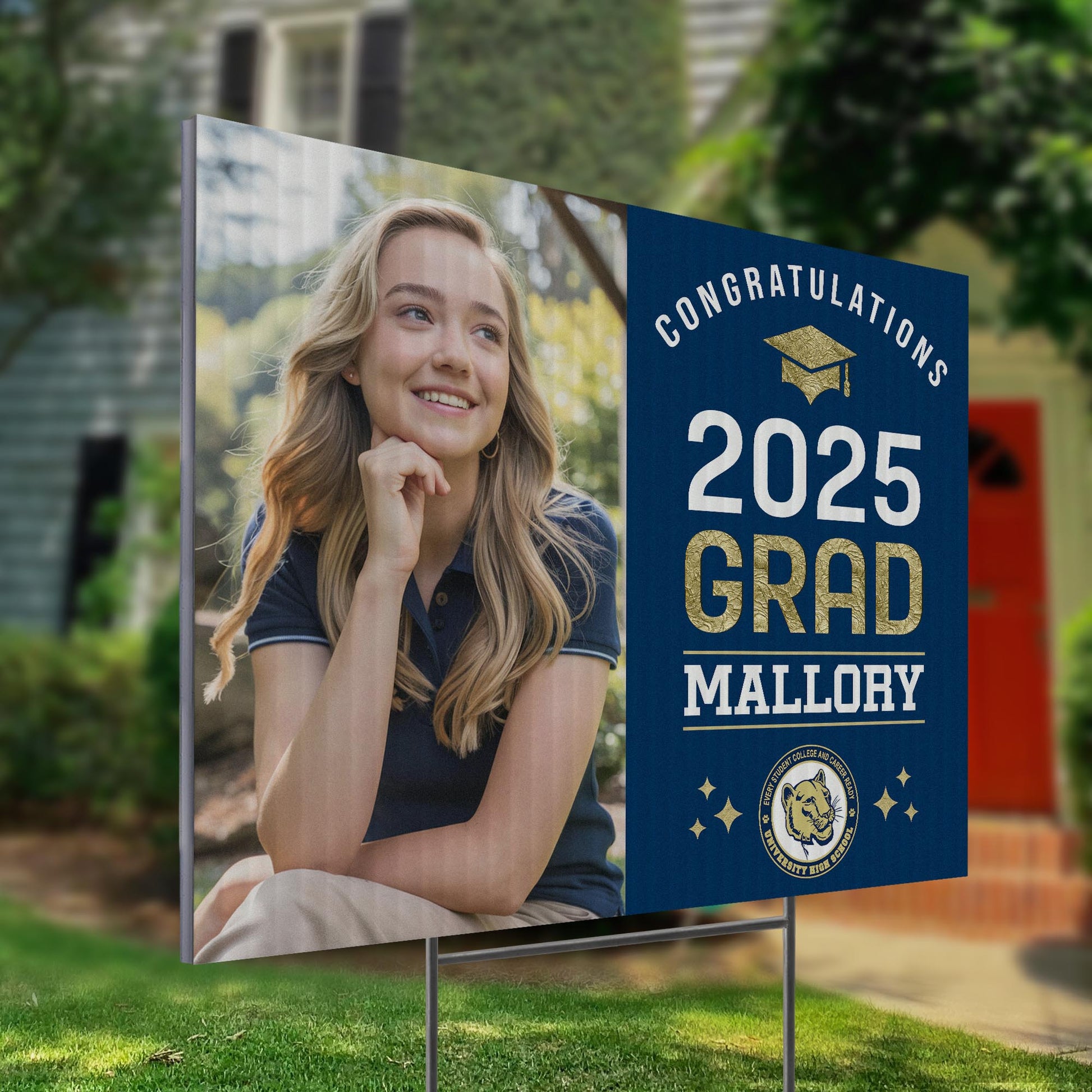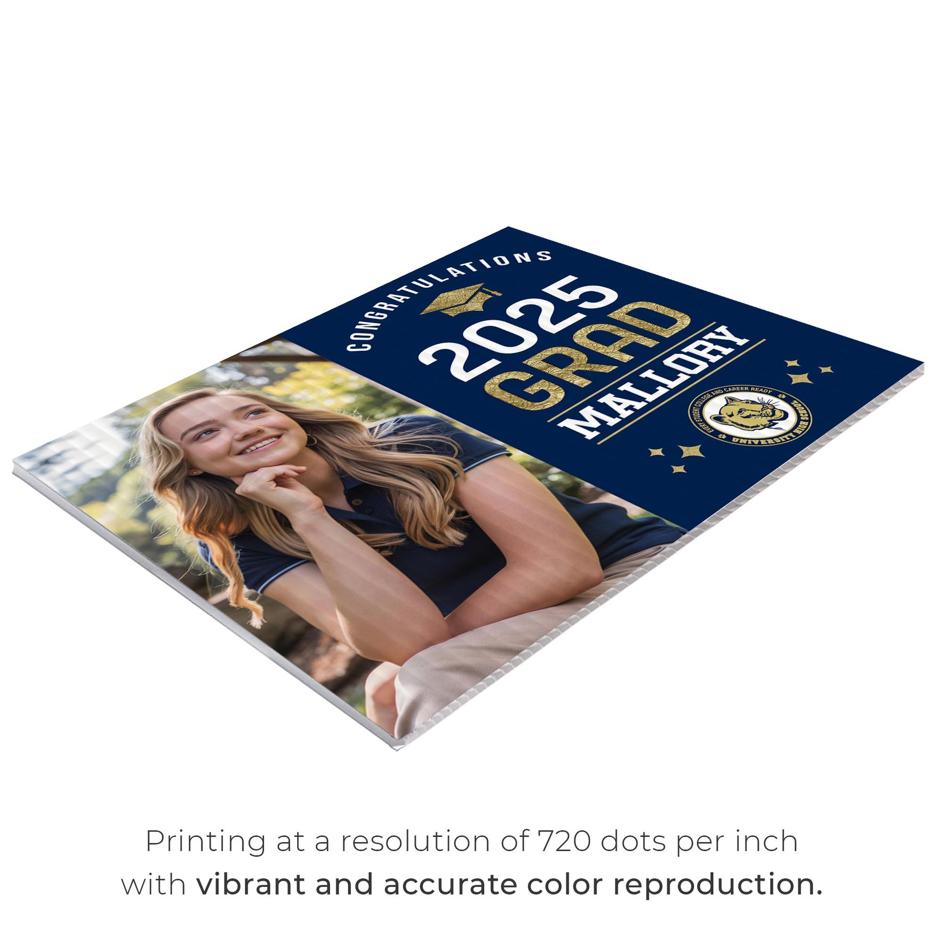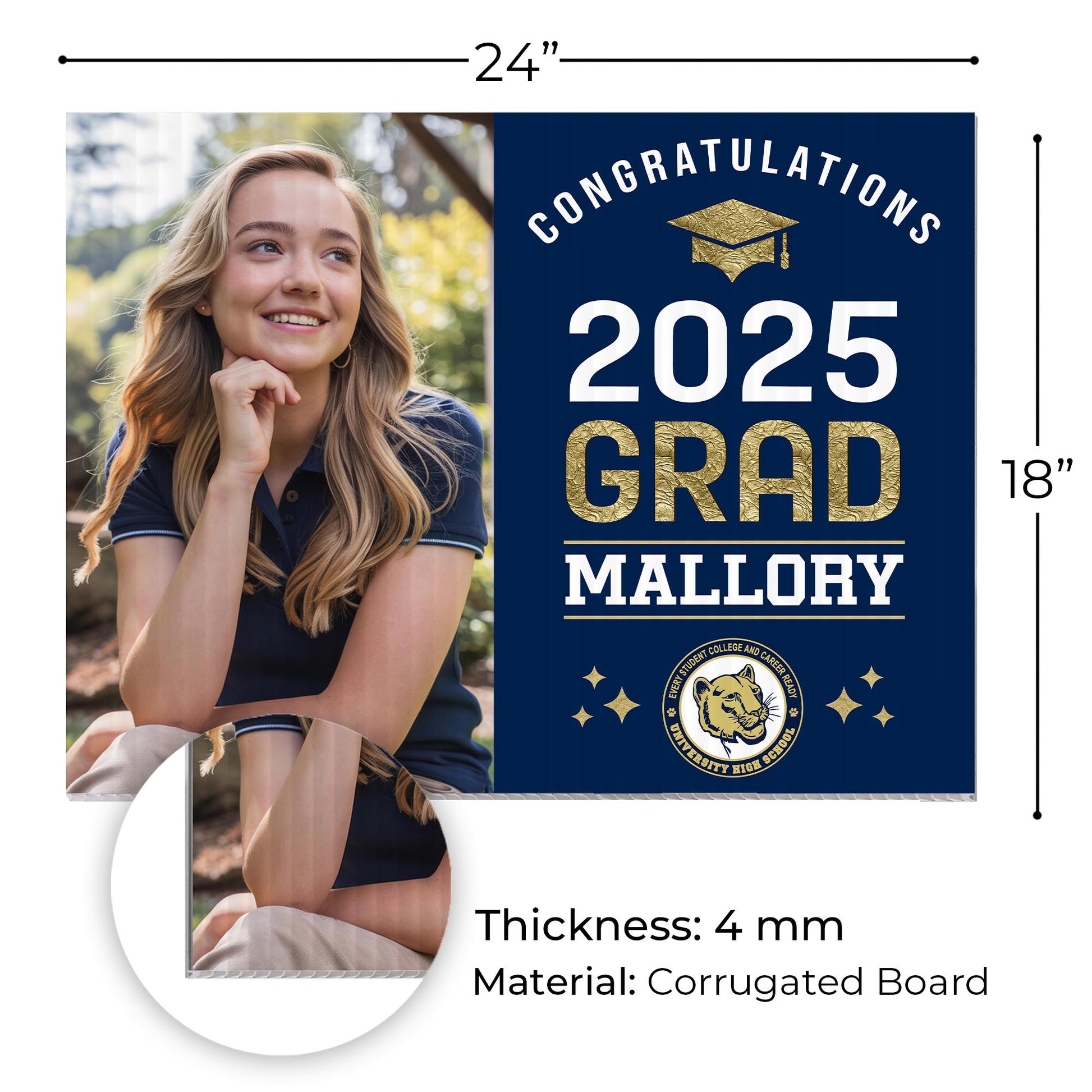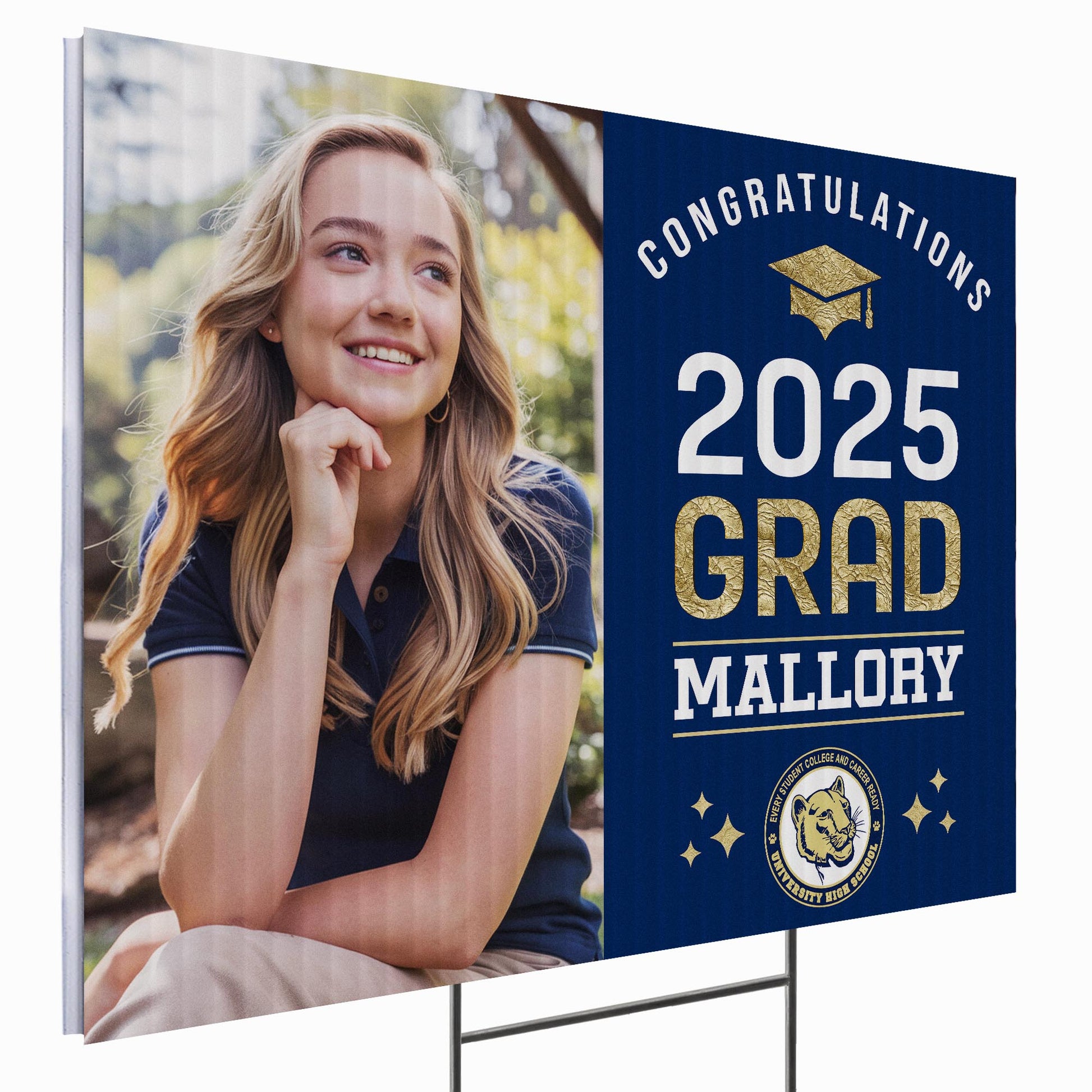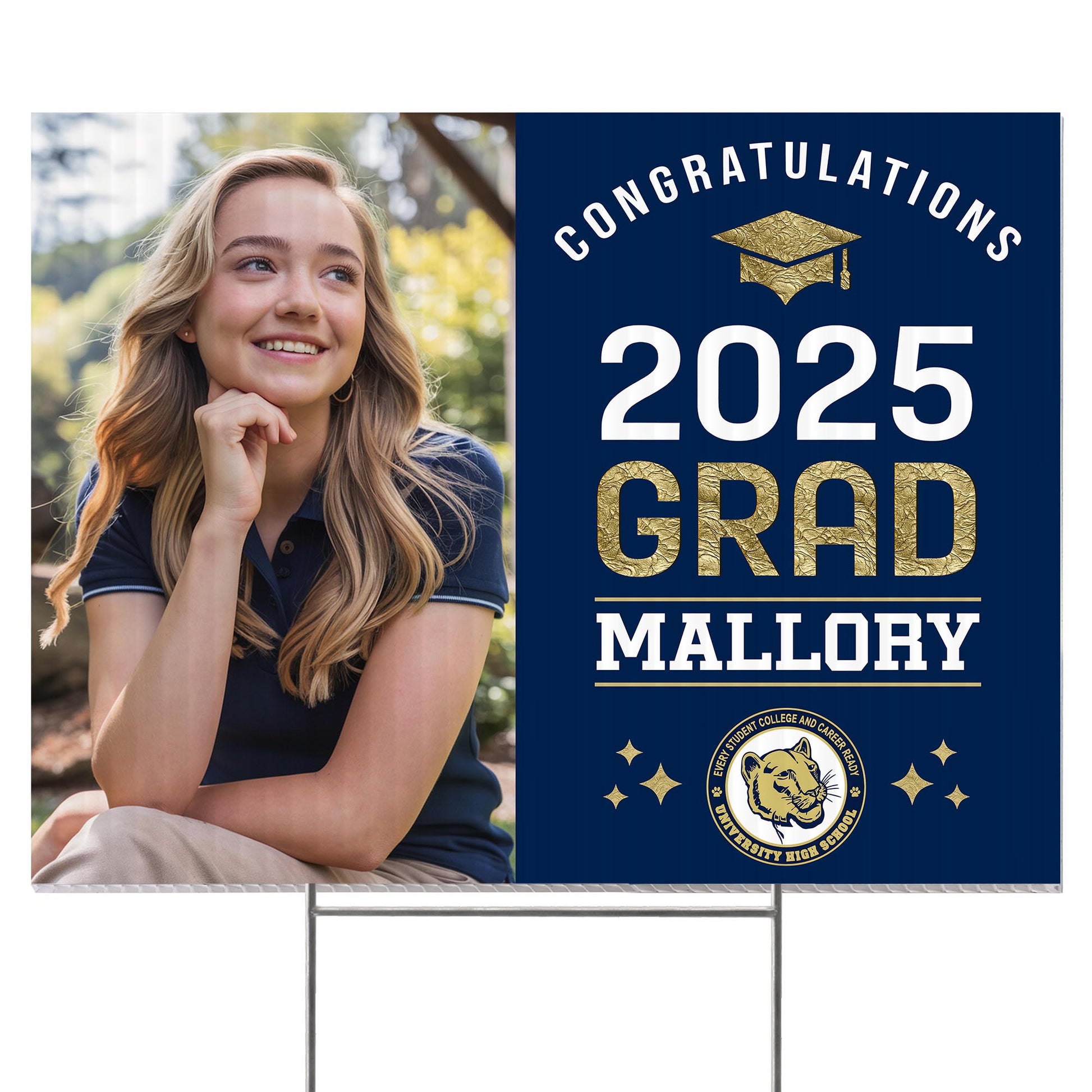 Customizable Design – Celebrate the achievements of University High School graduates with personalized yard signs. Add the graduate's name, graduation year, and a congratulatory message to create a unique, custom tribute, making it easy for friends, family, and the community to recognize and honor their accomplishment.