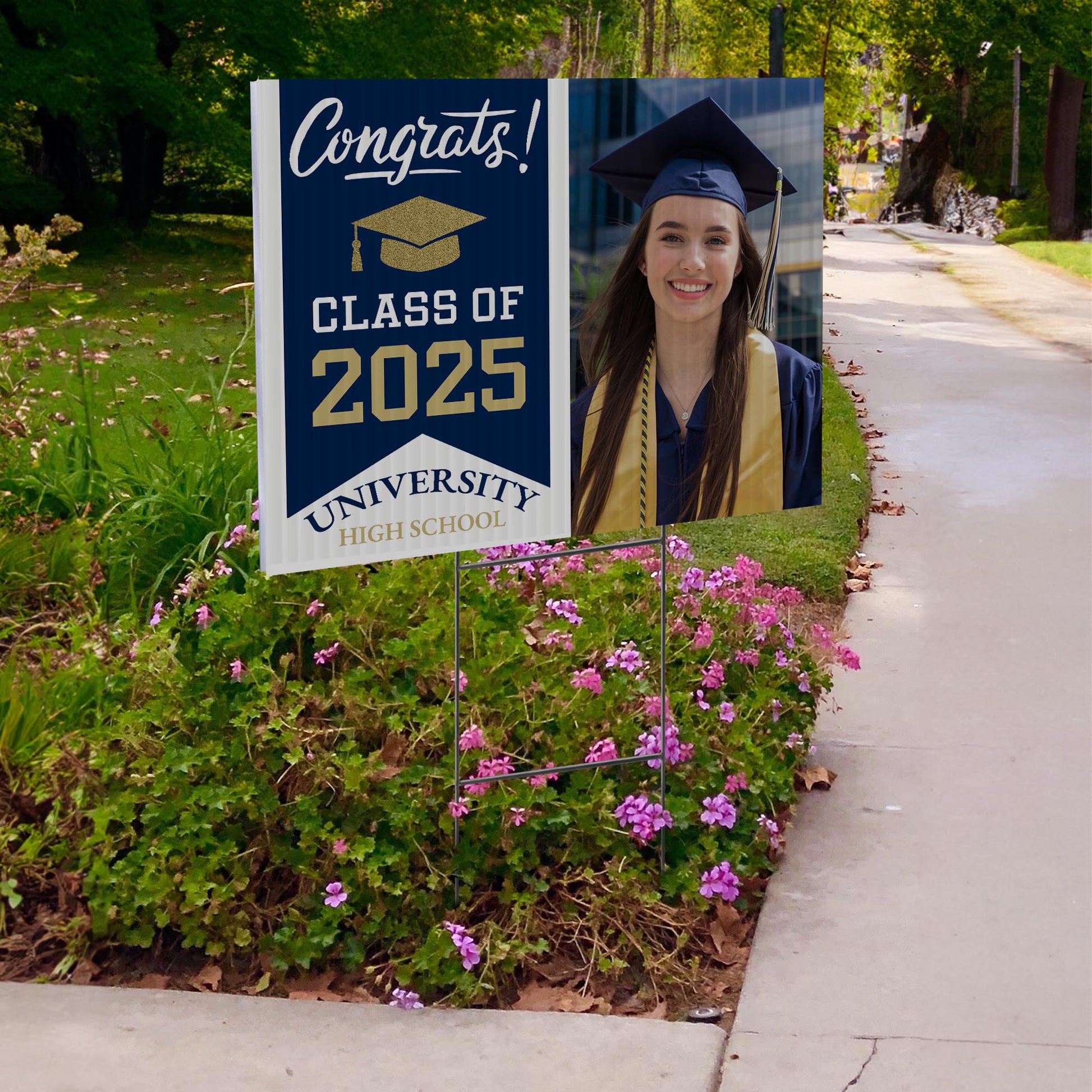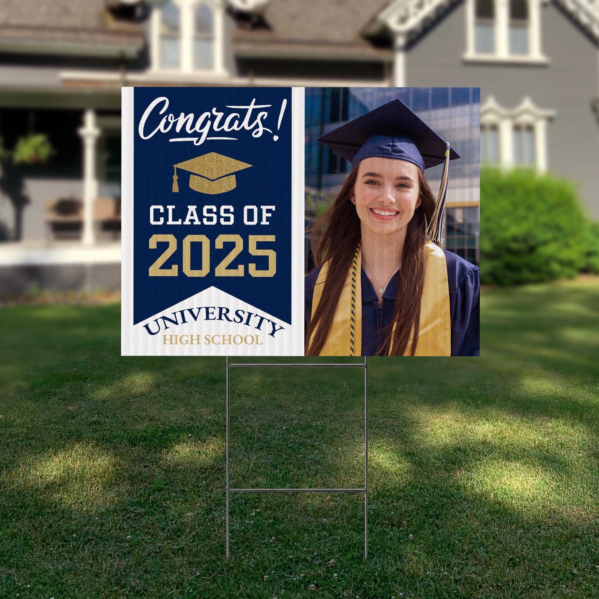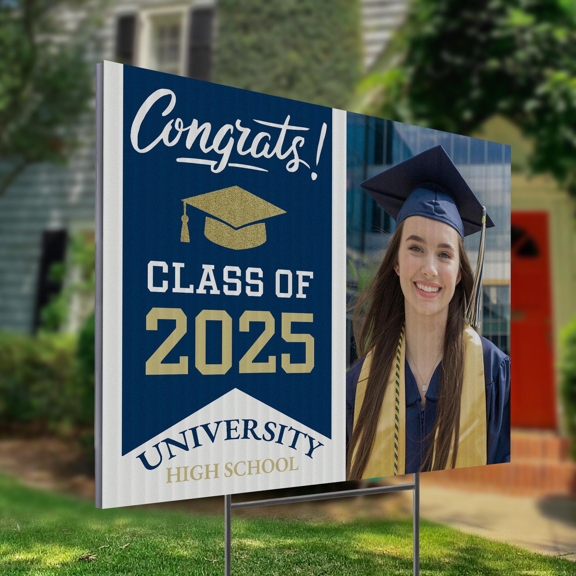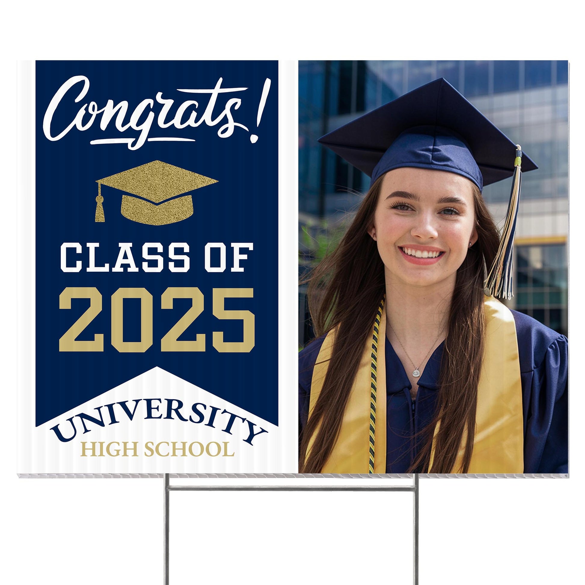 Customizable Design – Celebrate the achievements of University High School graduates with personalized yard signs. Add the graduate's name, graduation year, and a congratulatory message to create a unique, custom tribute, making it easy for friends, family, and the community to recognize and honor their accomplishment.