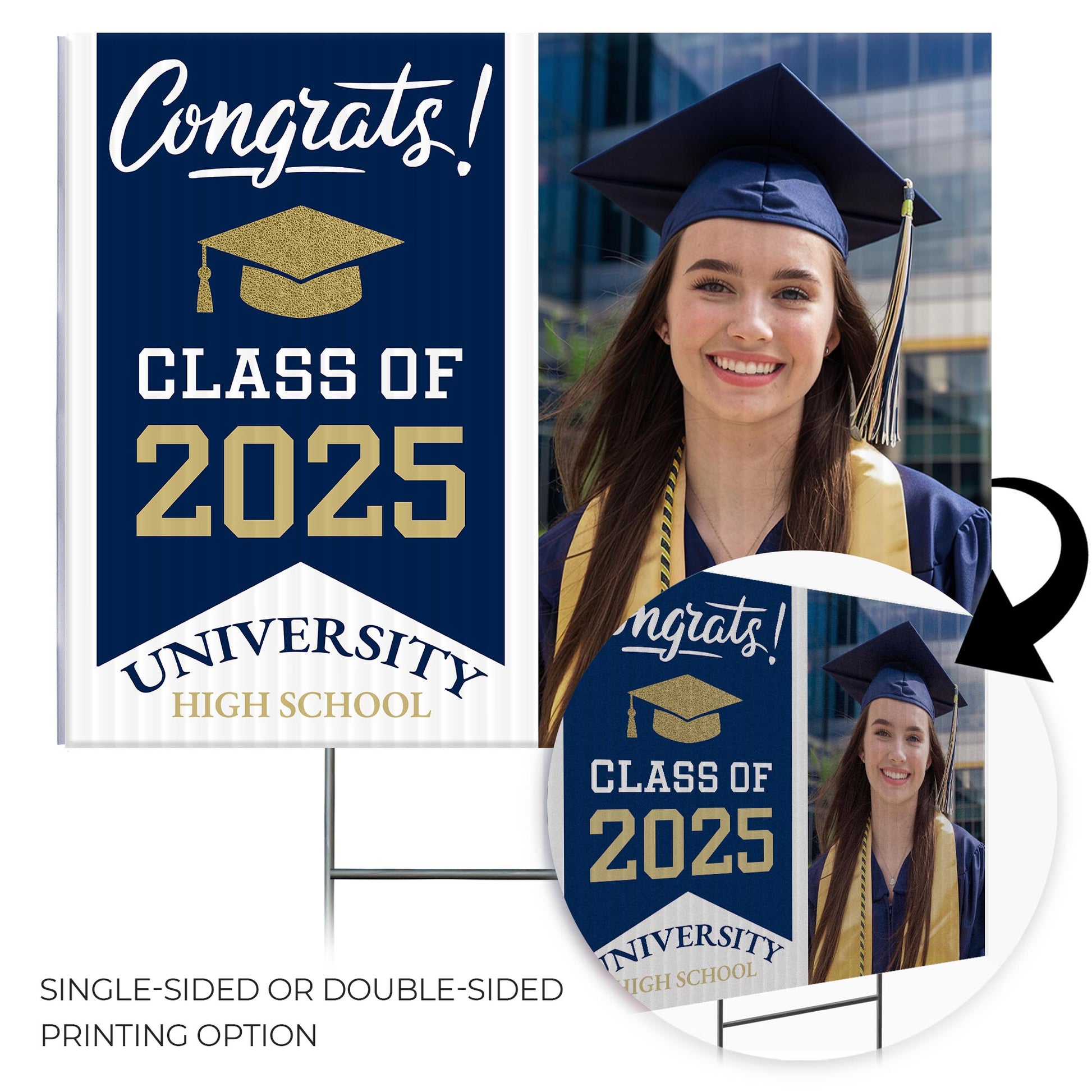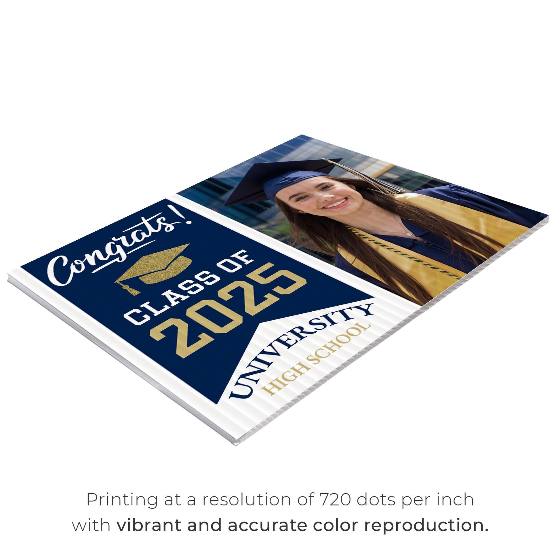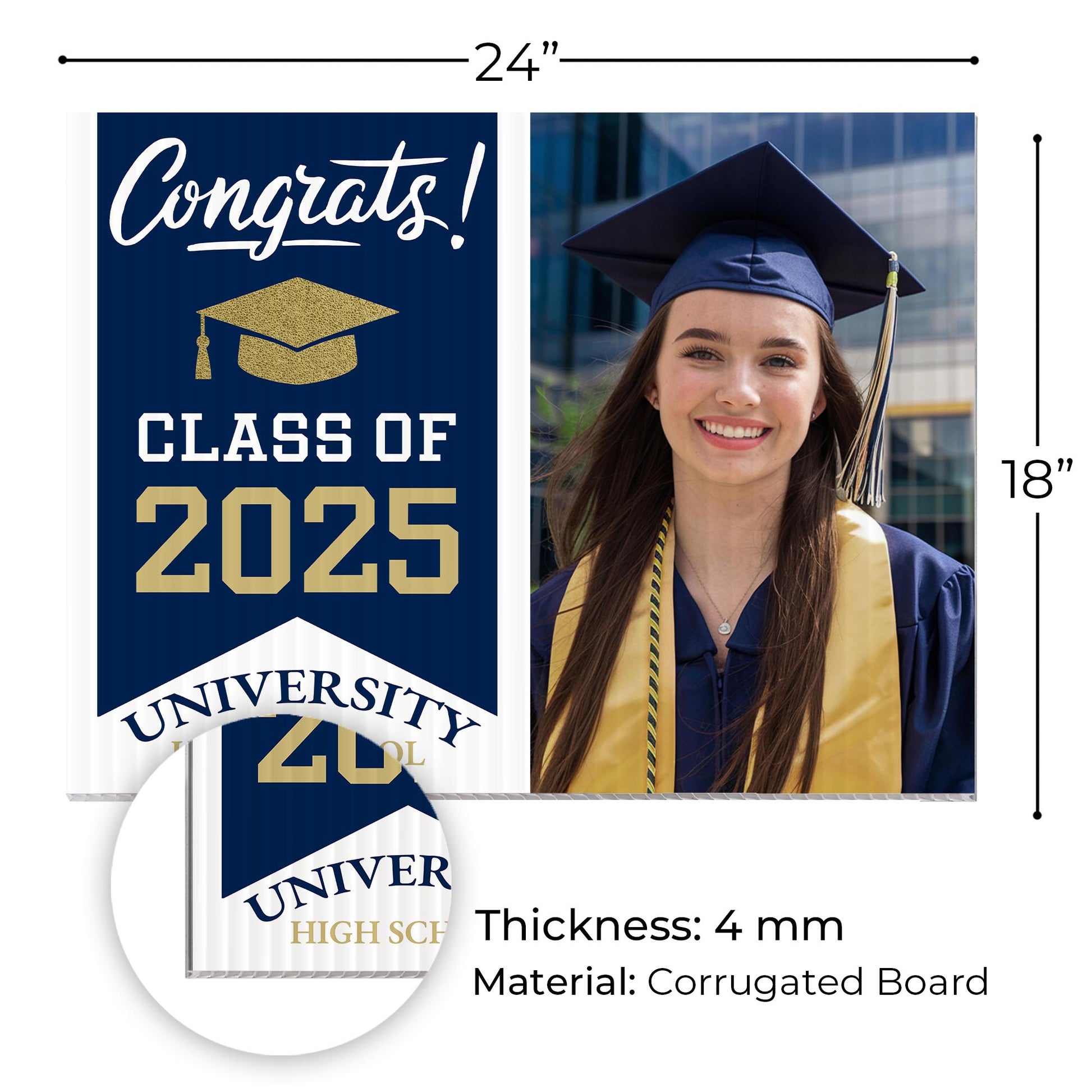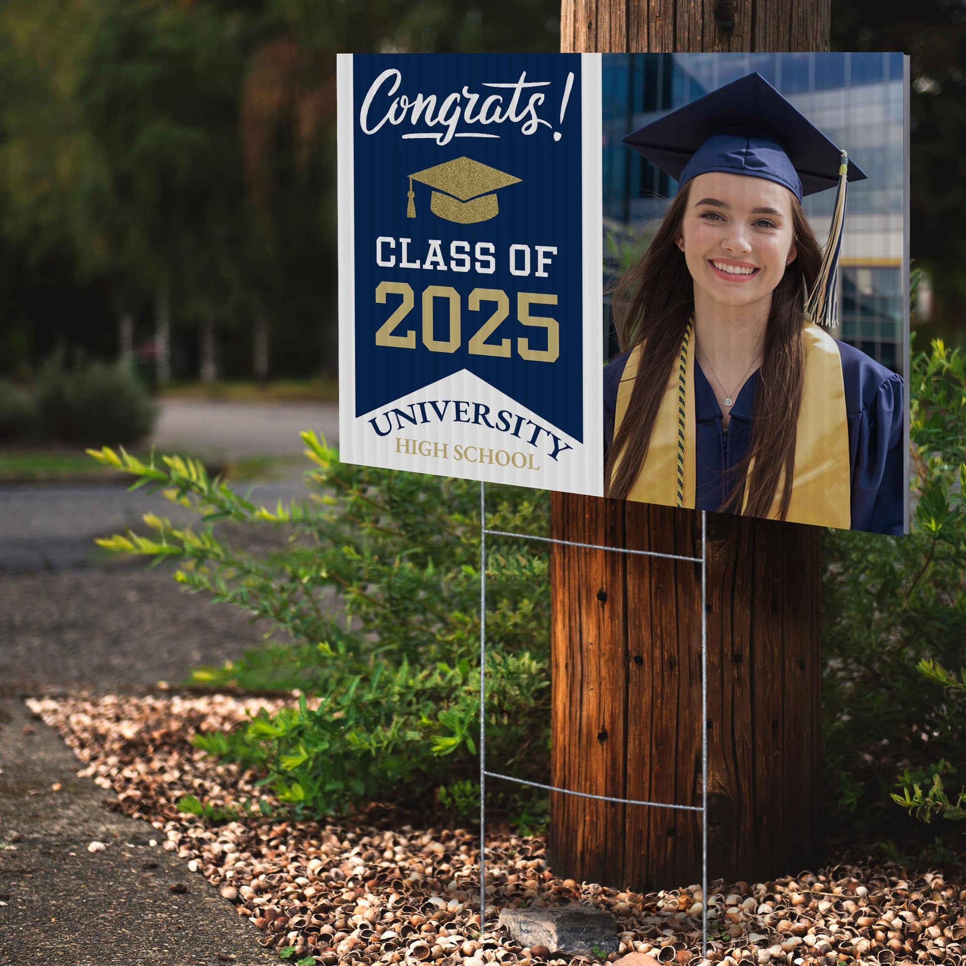 Customizable Design – Celebrate the achievements of University High School graduates with personalized yard signs. Add the graduate's name, graduation year, and a congratulatory message to create a unique, custom tribute, making it easy for friends, family, and the community to recognize and honor their accomplishment.