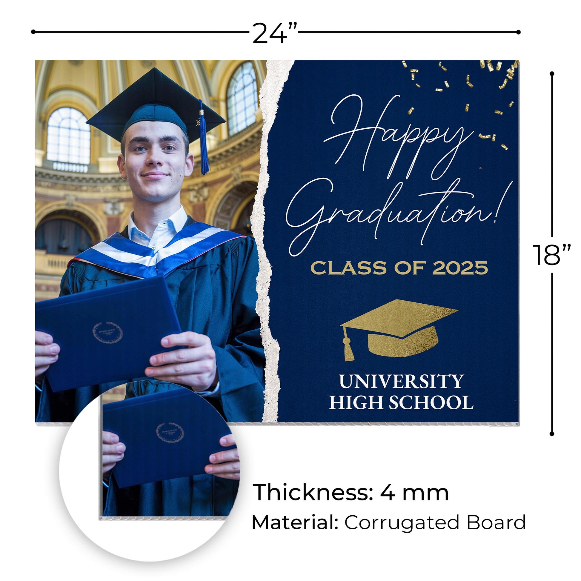 Customizable Design – Celebrate the achievements of University High School graduates with personalized yard signs. Add the graduate's name, graduation year, and a congratulatory message to create a unique, custom tribute, making it easy for friends, family, and the community to recognize and honor their accomplishment.