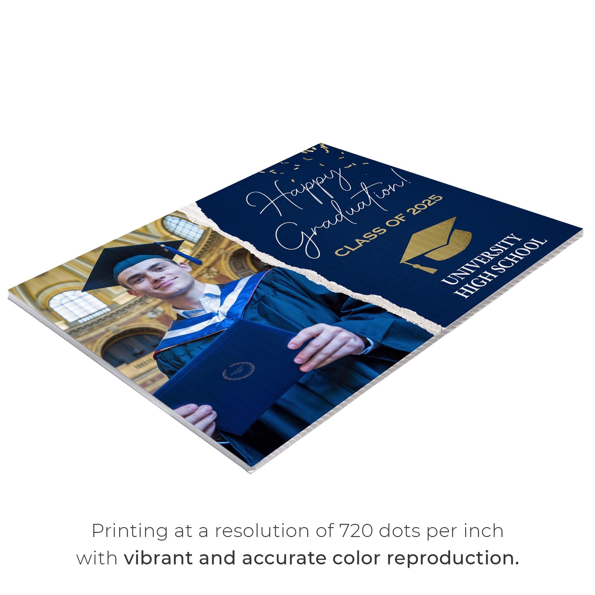 Vibrant Full-Color Printing – Make a statement with bold, full-color graphics printed on both sides of the sign. The eye-catching congratulatory message, along with the graduate's details, ensures visibility from every angle, helping to celebrate this special milestone in style.