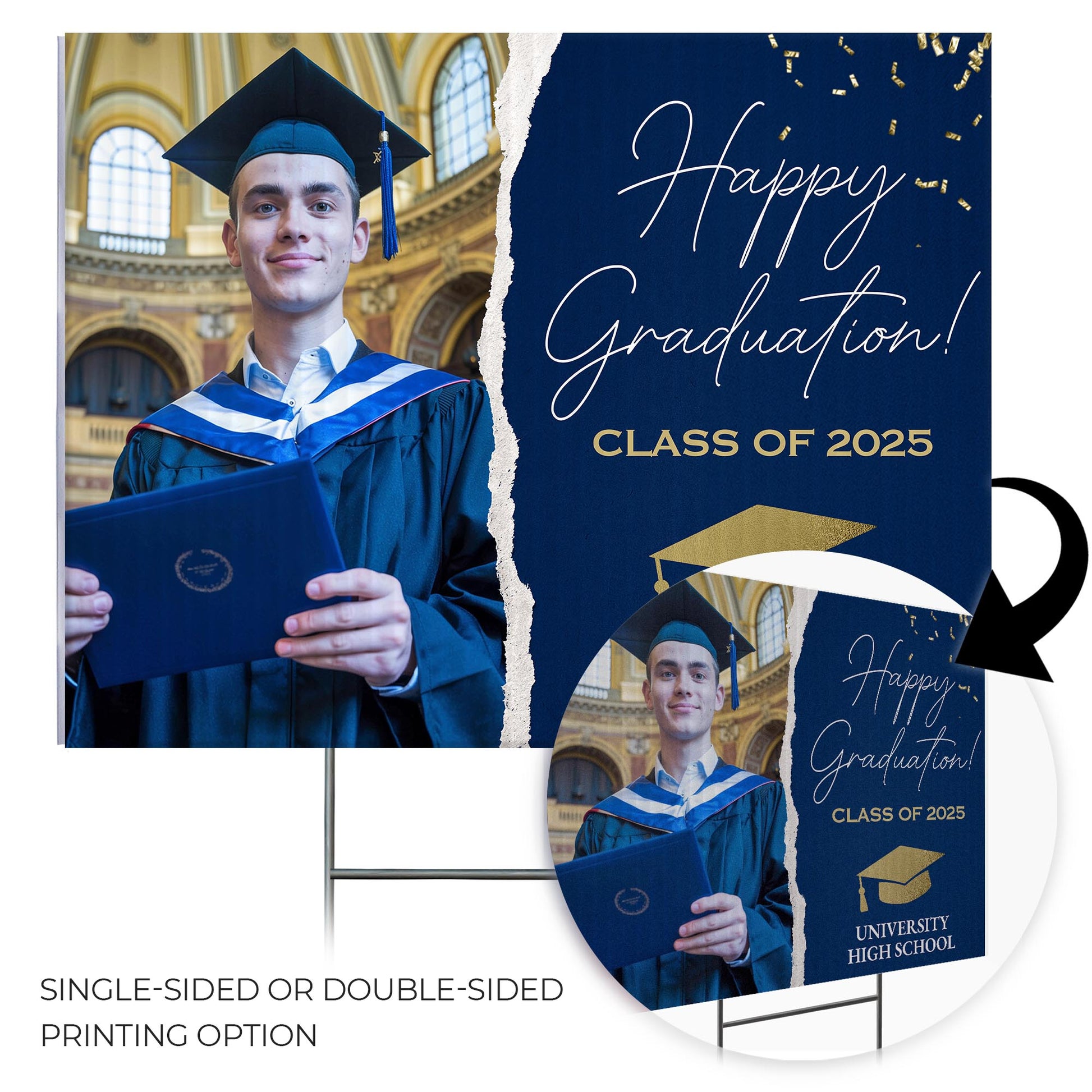 Commemorate this special achievement with our custom yard signs. Add your personalized design, complete your order, and let us handle the rest. Honor your graduate and make their day unforgettable with signs that stand out.