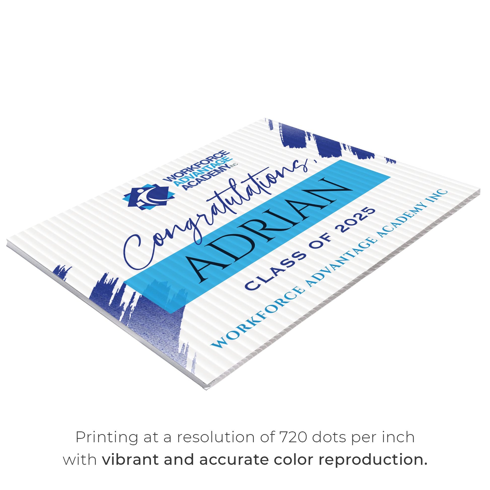 Customizable Design – Celebrate the achievements of Workforce Advantage Academy graduates with personalized yard signs. Add the graduate’s name, graduation year, and a congratulatory message to create a unique, custom tribute, making it easy for friends, family, and the community to recognize and honor their accomplishment.