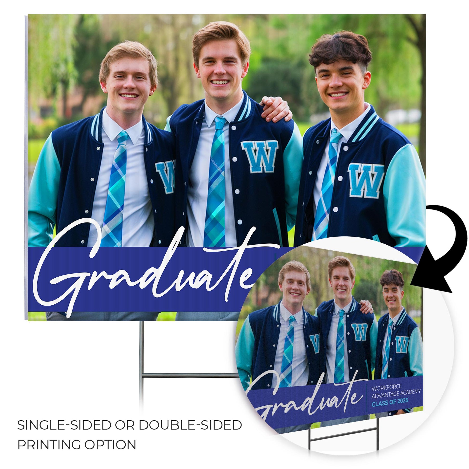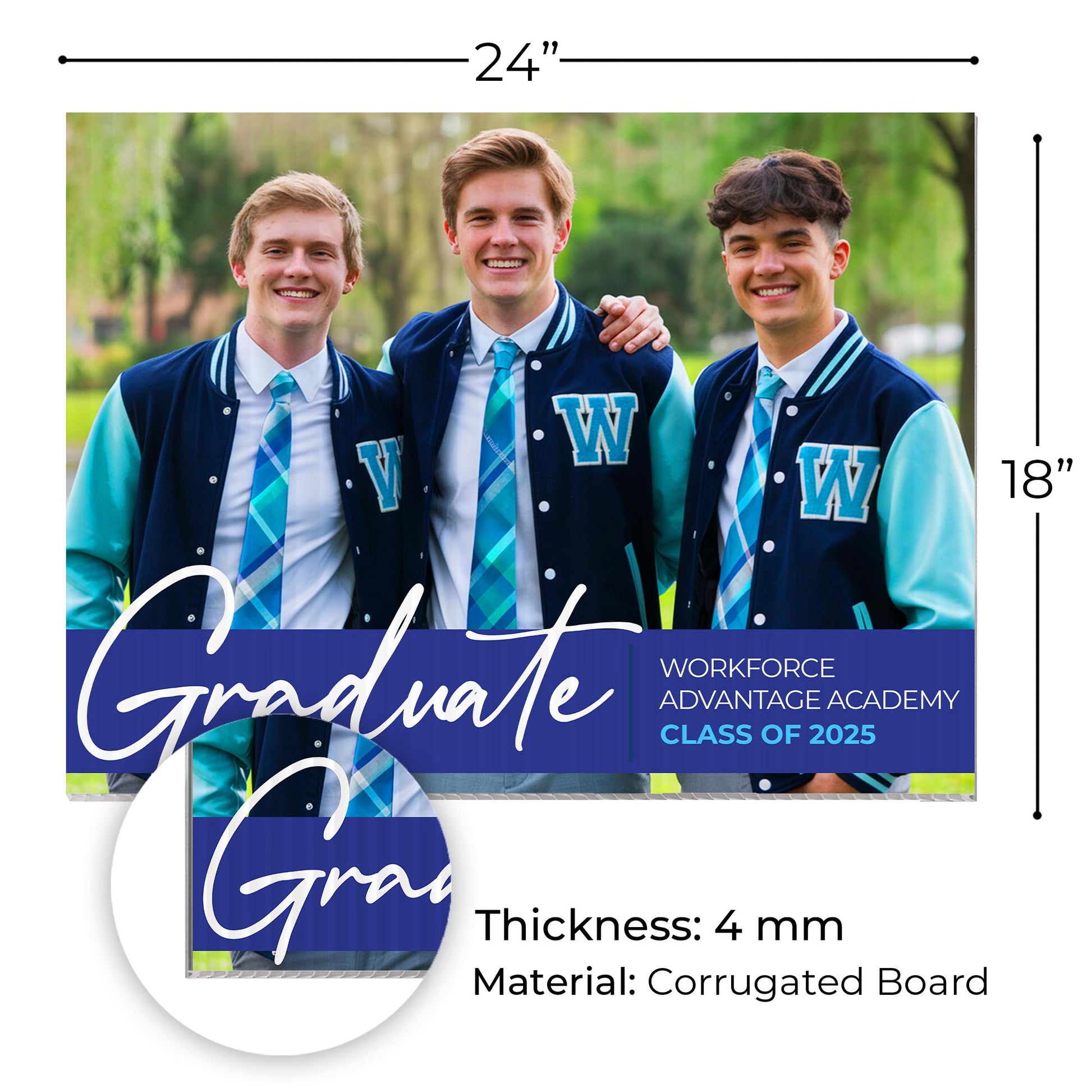 Customizable Design – Celebrate the achievements of Workforce Advantage Academy graduates with personalized yard signs. Add the graduate’s name, graduation year, and a congratulatory message to create a unique, custom tribute, making it easy for friends, family, and the community to recognize and honor their accomplishment.